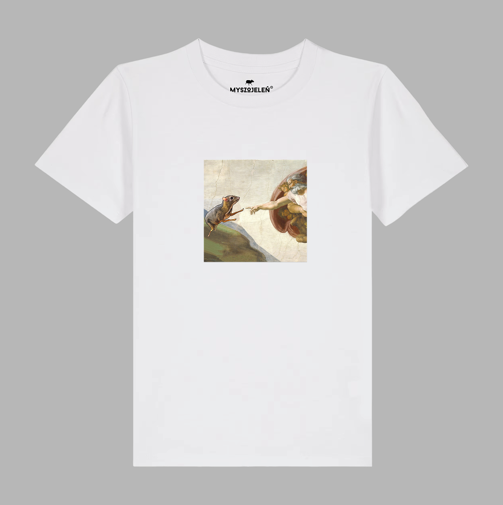 Koszulka z linii Myszojeleń ART to więcej, niż tylko tiszert z nadrukiem. Dajemy gwarancję, że nosząc ją nie uda Ci się przemknąć niepostrzeżenie, bo połączenie klasycznych dzieł malarskich z postacią Myszojelenia wyszło nam po mistrzowsku!