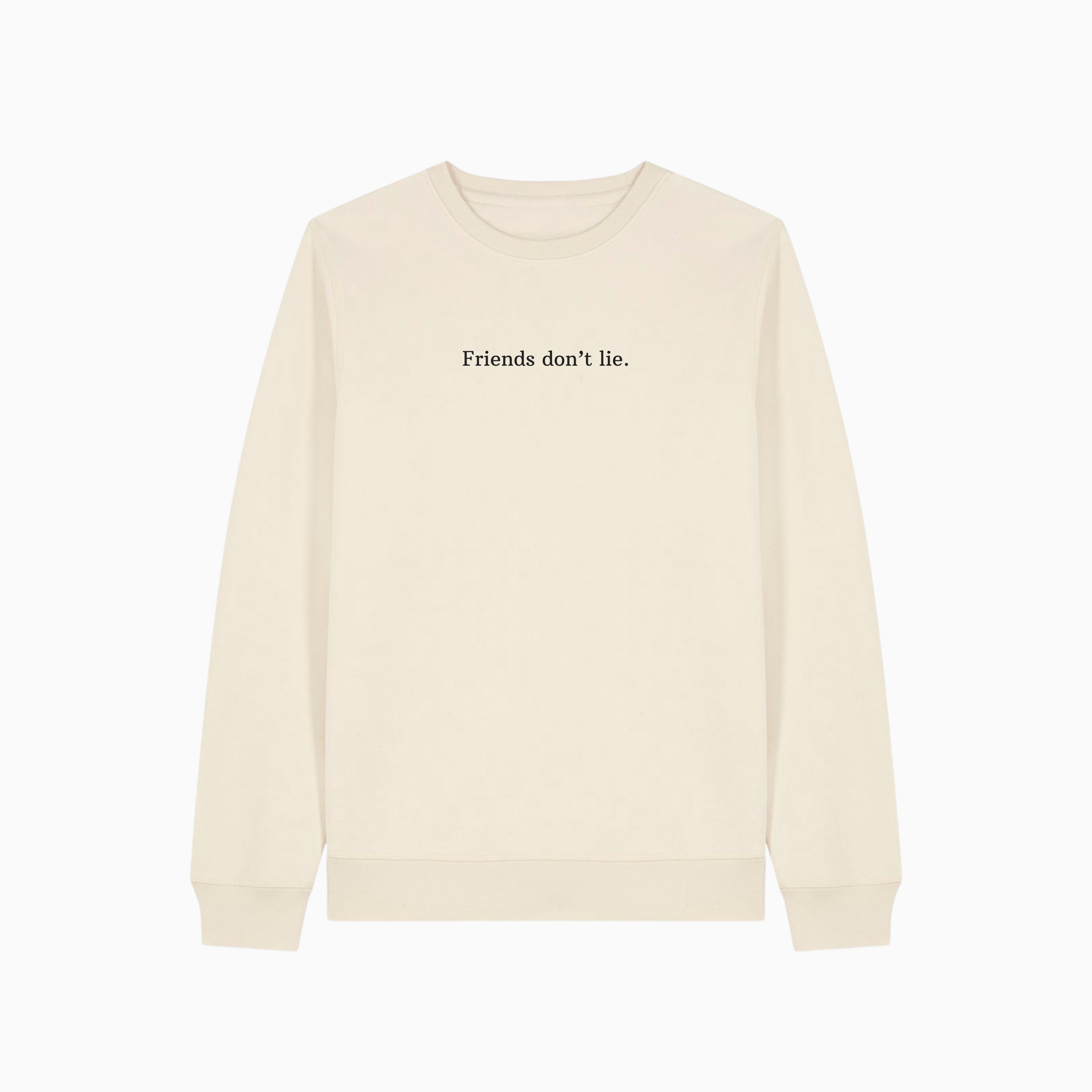 Bluza z nadrukiem - FRIENDS DON'T LIE. Klasyczny krój bez kaptura.