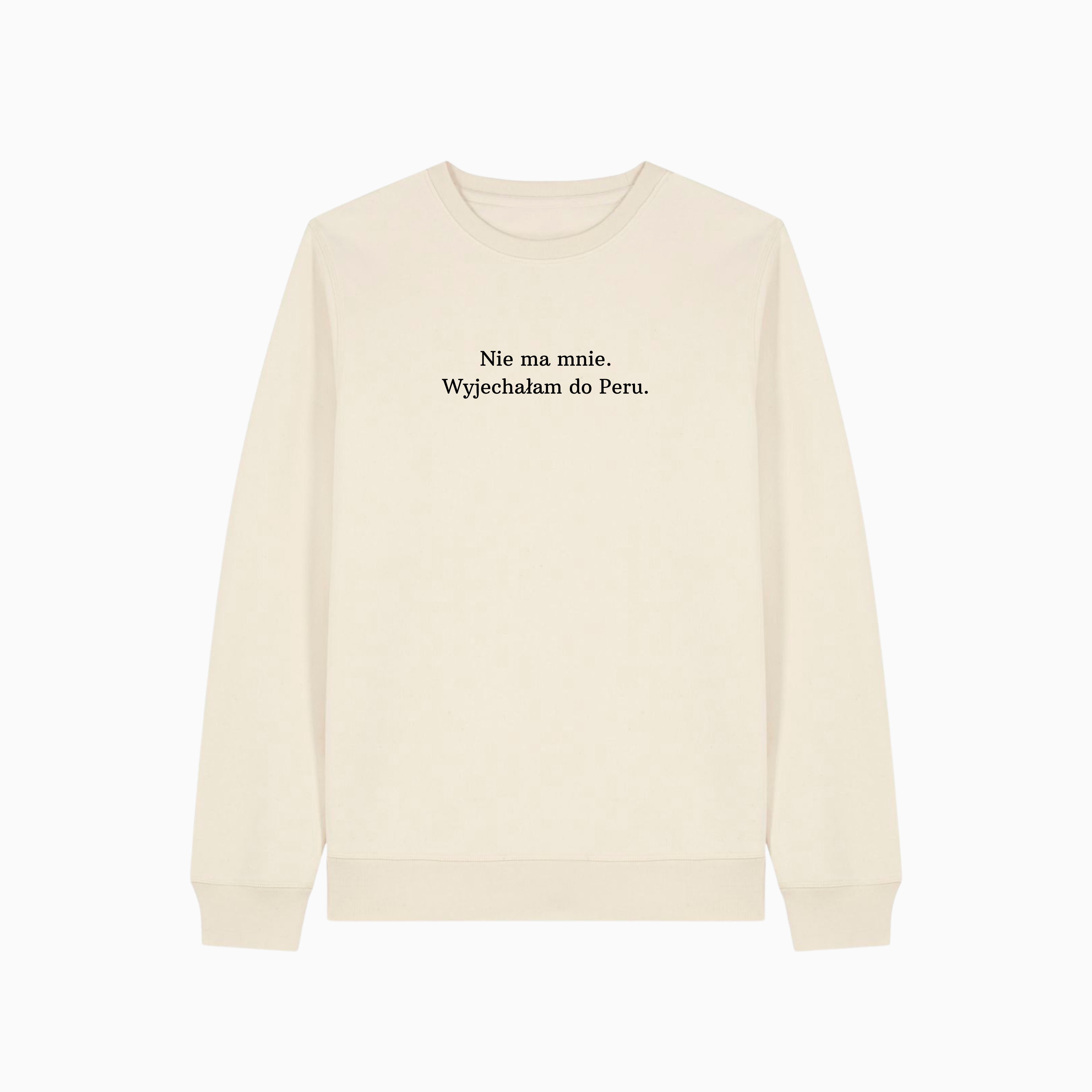 Bluza z nadrukiem - NIE MA MNIE. WYJECHAŁAM DO PERU. Klasyczny krój bez kaptura.