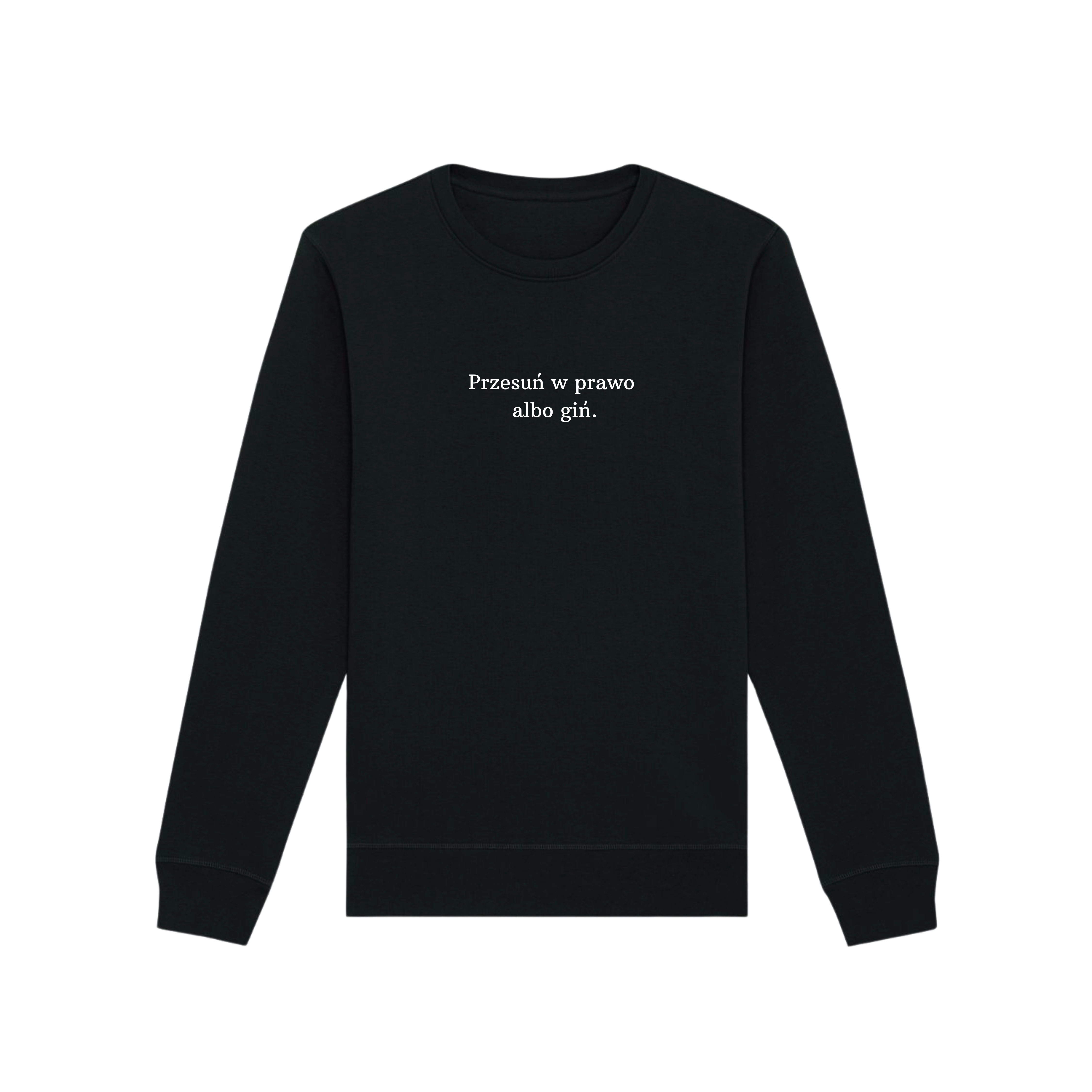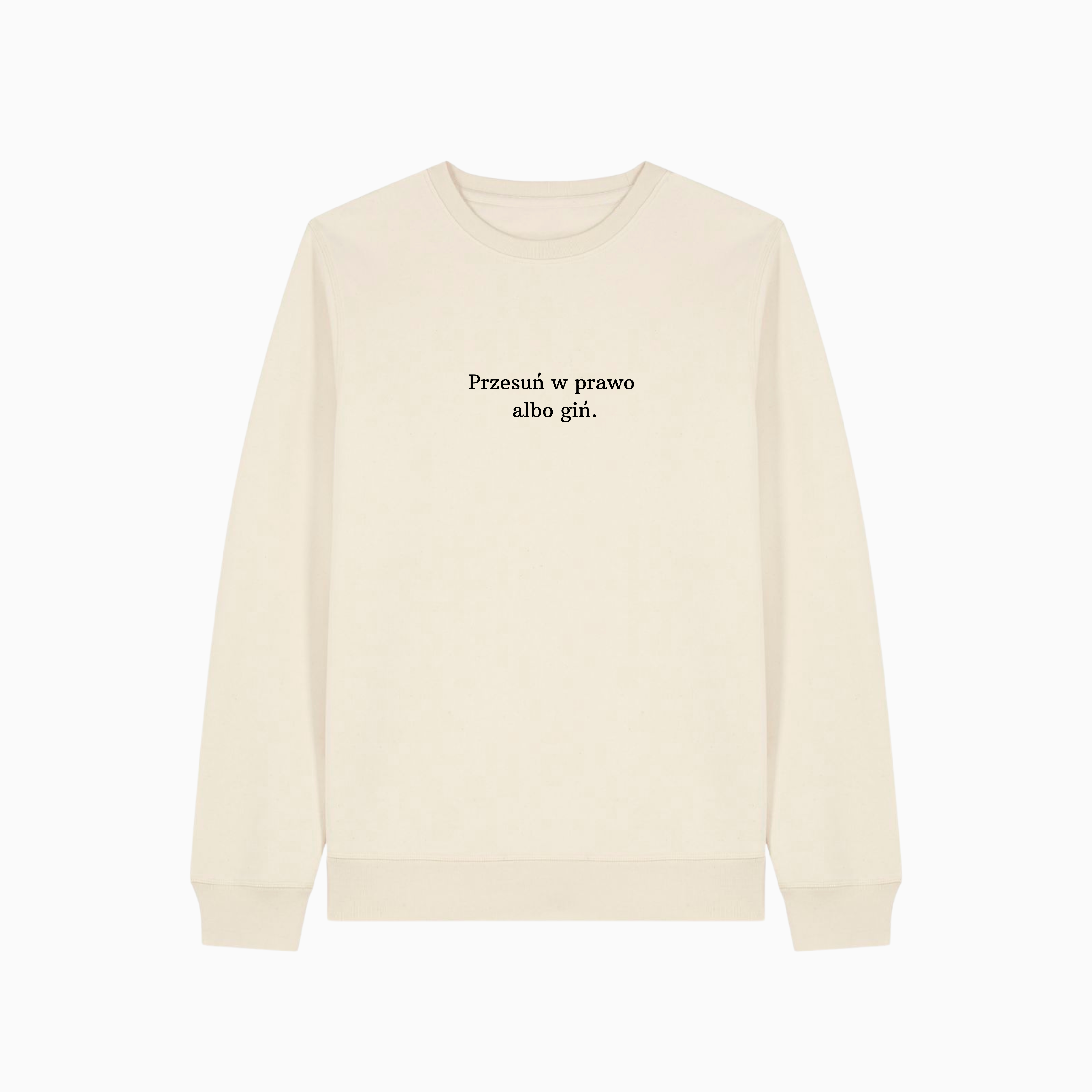 Bluza z nadrukiem PRZESUŃ W PRAWO ALBO GIŃ (bez kaptura)