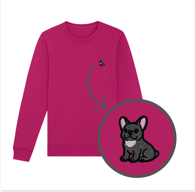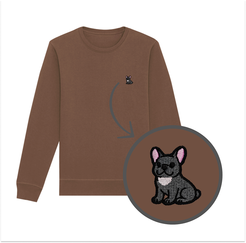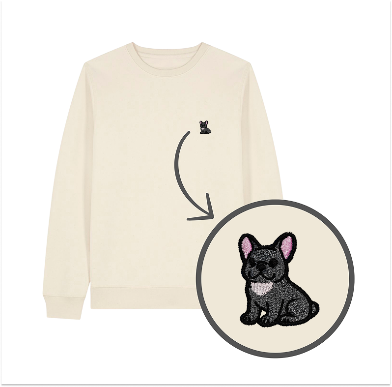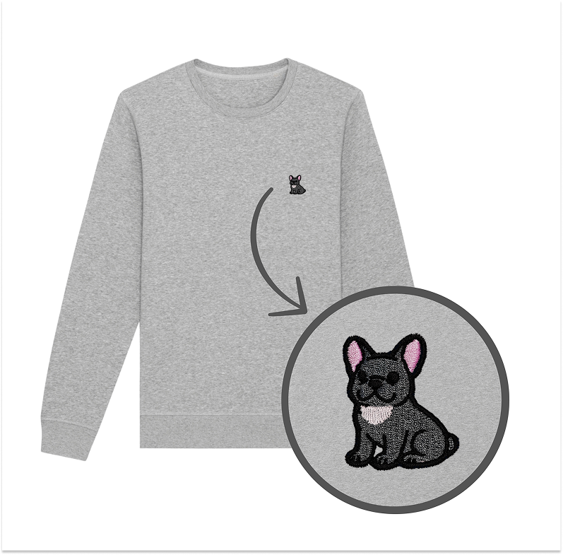 Bluza z haftem - BULDOG FRANCUSKI SZARY na piersi. Klasyczny krój bez kaptura.