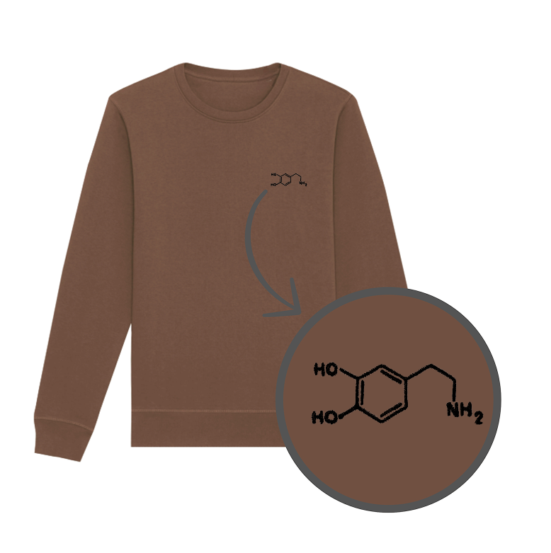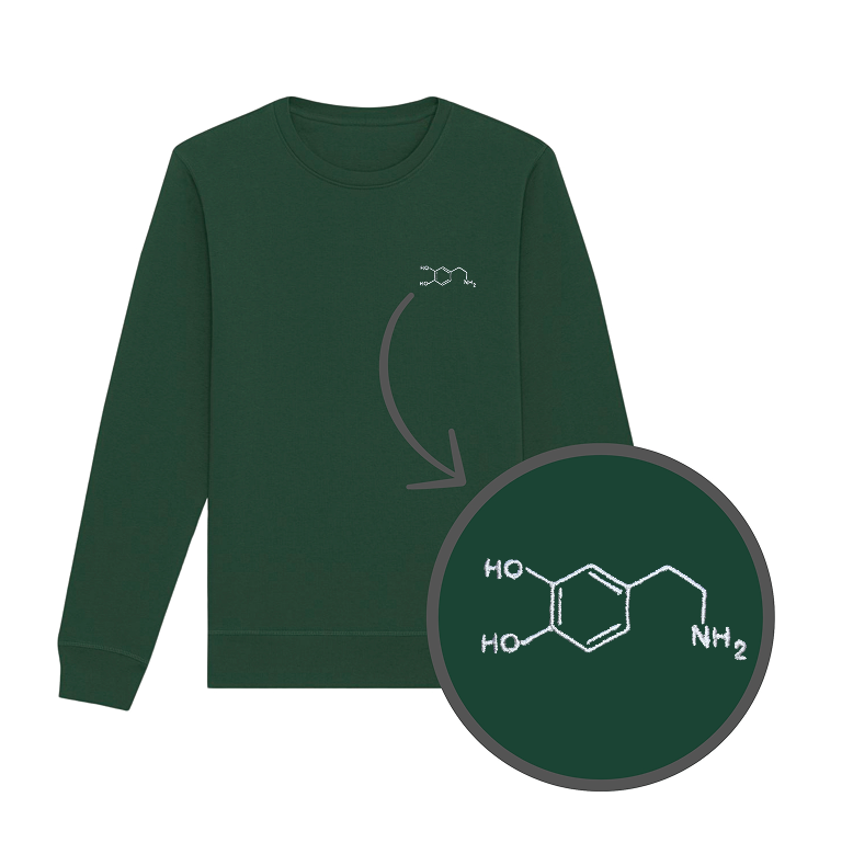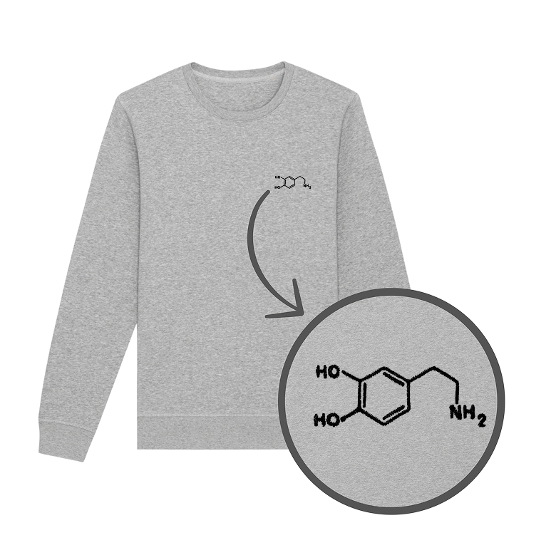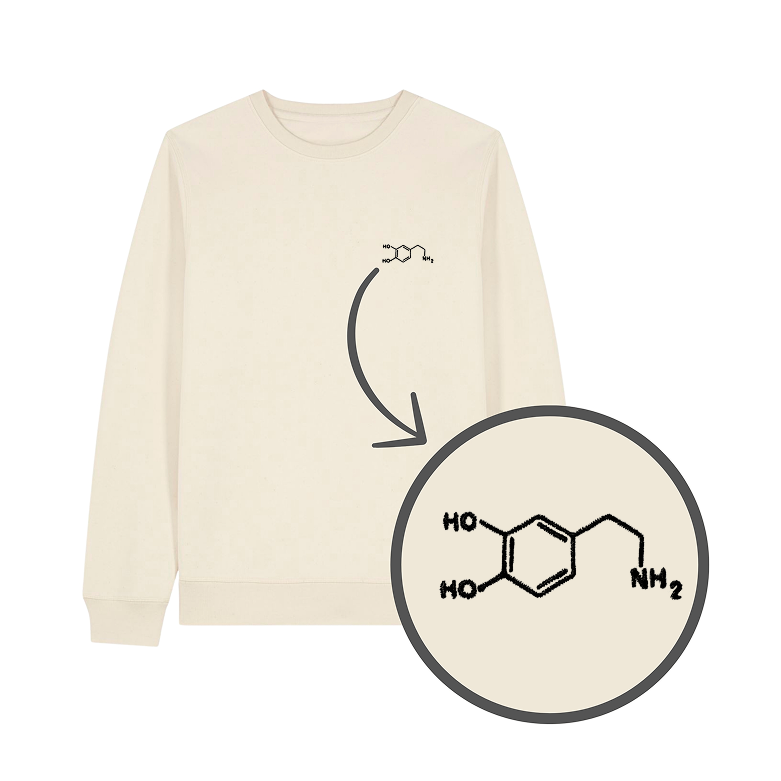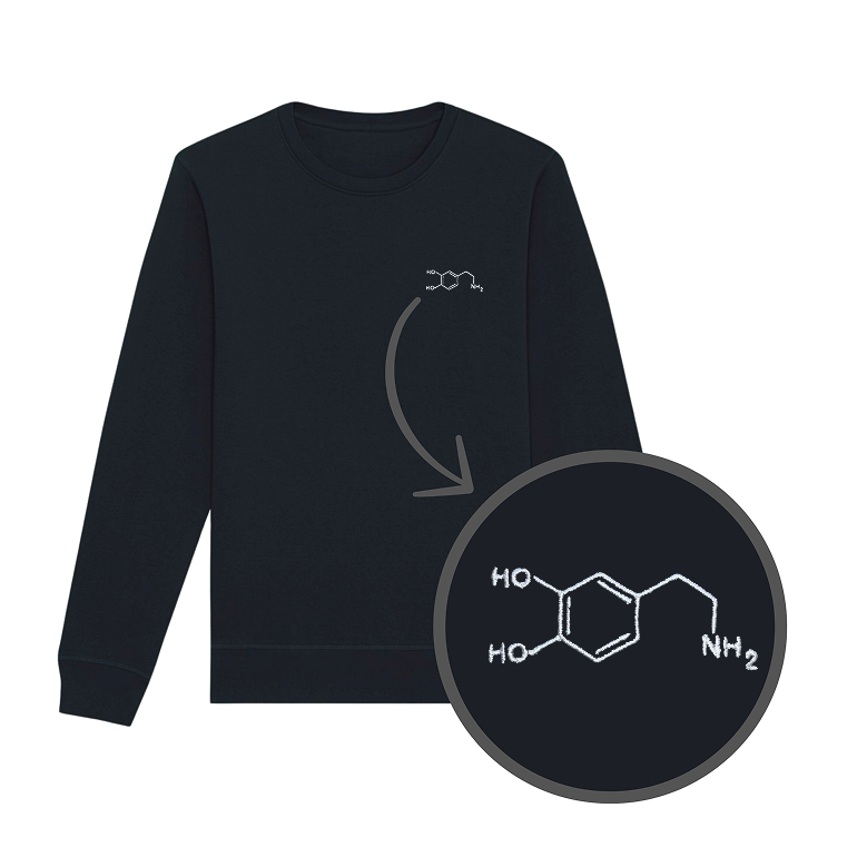 Bluza z haftem - wzór chemiczny dopaminy na piersi. Klasyczny krój bez kaptura. Zadbaj o swój poziom szczęścia i spraw sobie bluzę!