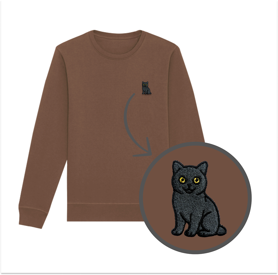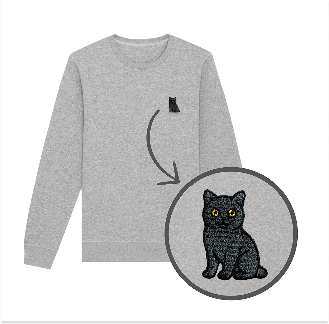 Bluza z haftem - KOT BRYTYJSKI na piersi. Klasyczny krój bez kaptura. Możesz wybrać dowolny kolor oczu kota – pełna personalizacja pod Ciebie!