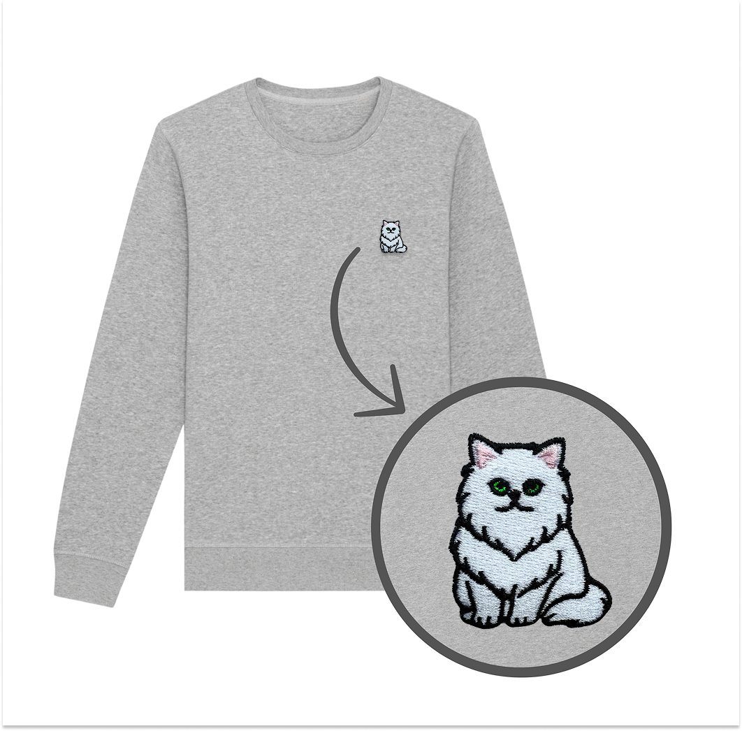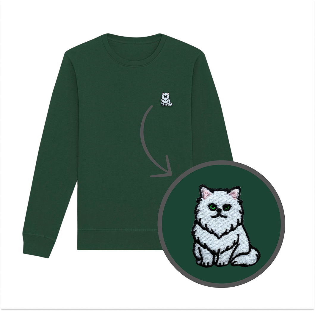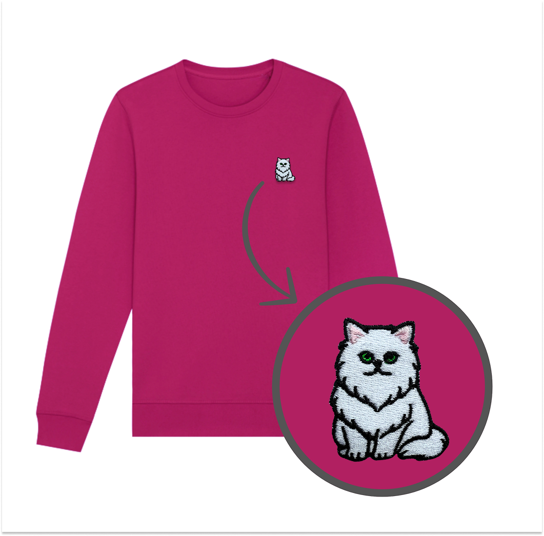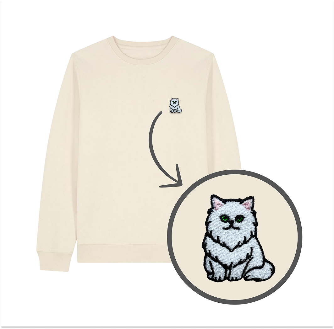 Bluza z haftem - KOT PERSKI BIAŁY na piersi. Klasyczny krój bez kaptura. Możesz wybrać dowolny kolor oczu kota – pełna personalizacja pod Ciebie!
