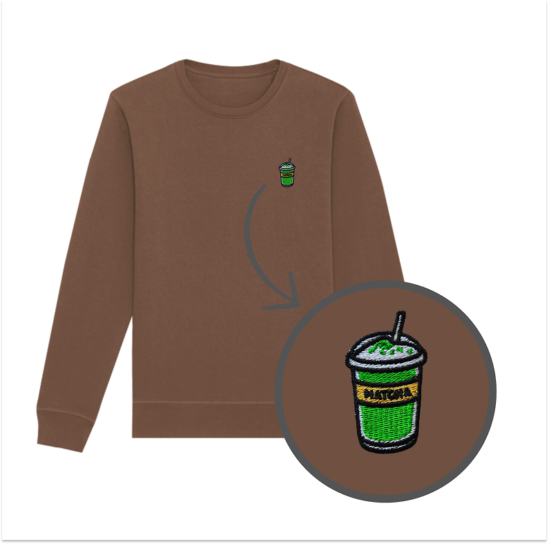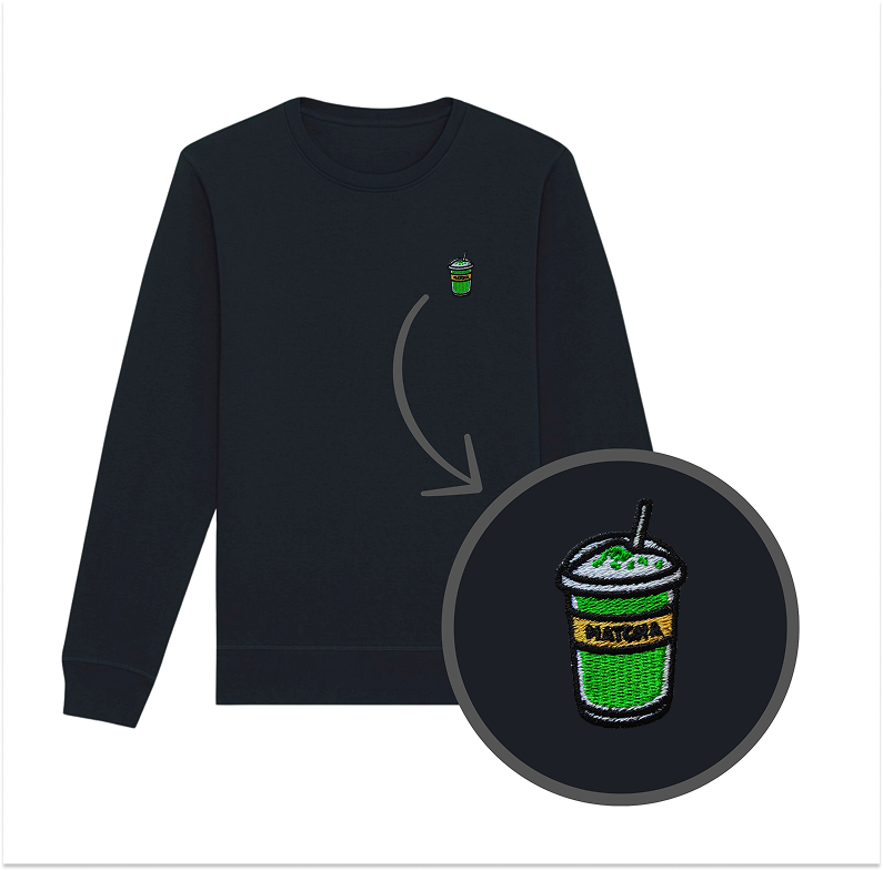 Bluza z haftem - MATCHA na piersi. Klasyczny krój bez kaptura.