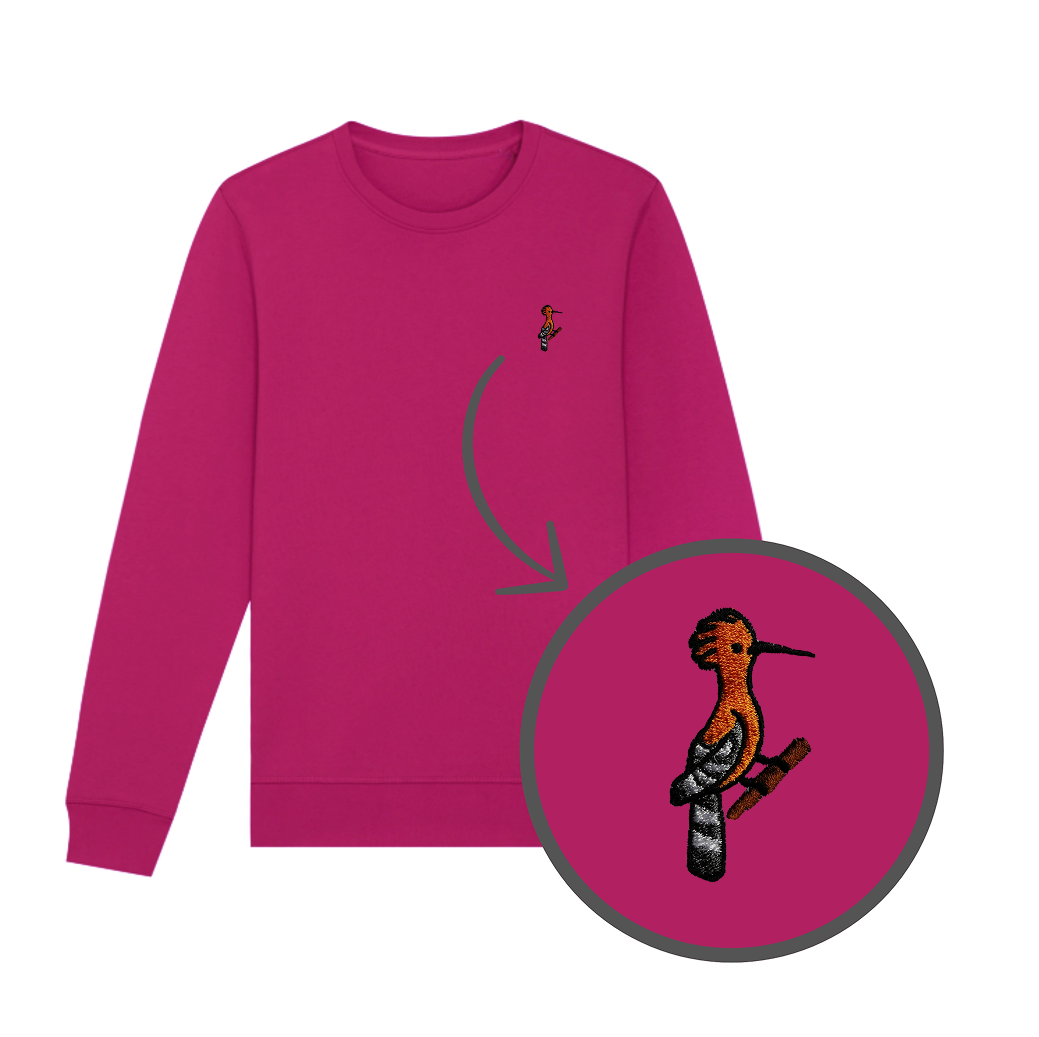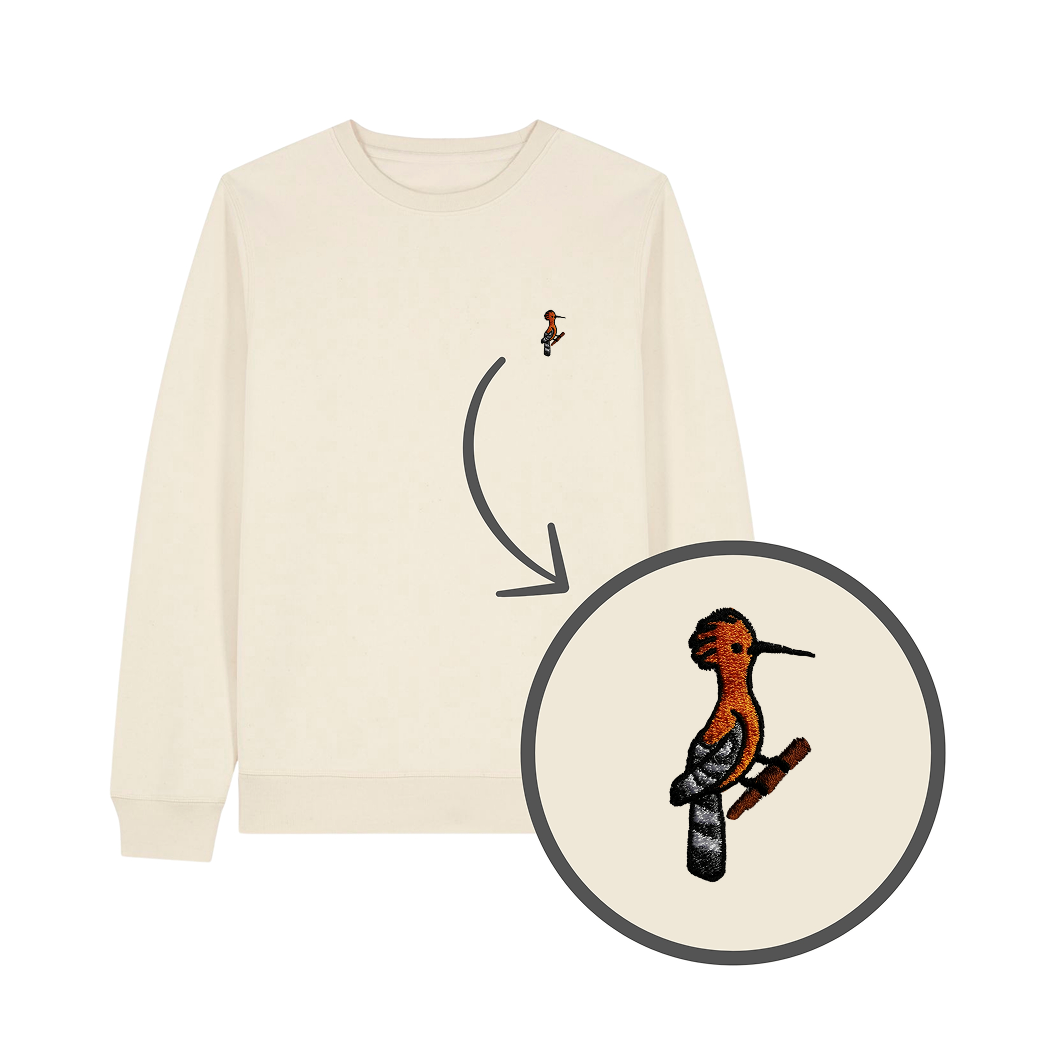 Bluza z haftem - ptak dudek na piersi. Klasyczny krój bez kaptura.
