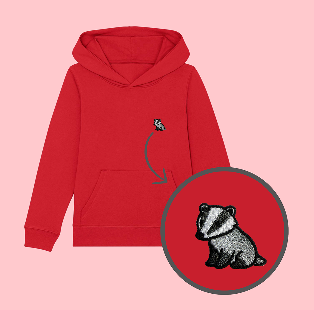 Bluza dziecięca z haftowanym borsukiem - taki sam model, jak bluzy dla dorosłych (w bluzach dla dzieci brak sznurka pod szyją).