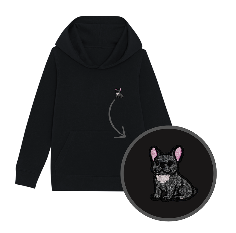 Bluza dziecięca z haftowem BULDOG FRANCUSKI SZARY - taki sam model, jak bluzy dla dorosłych (w bluzach dla dzieci brak sznurka pod szyją).