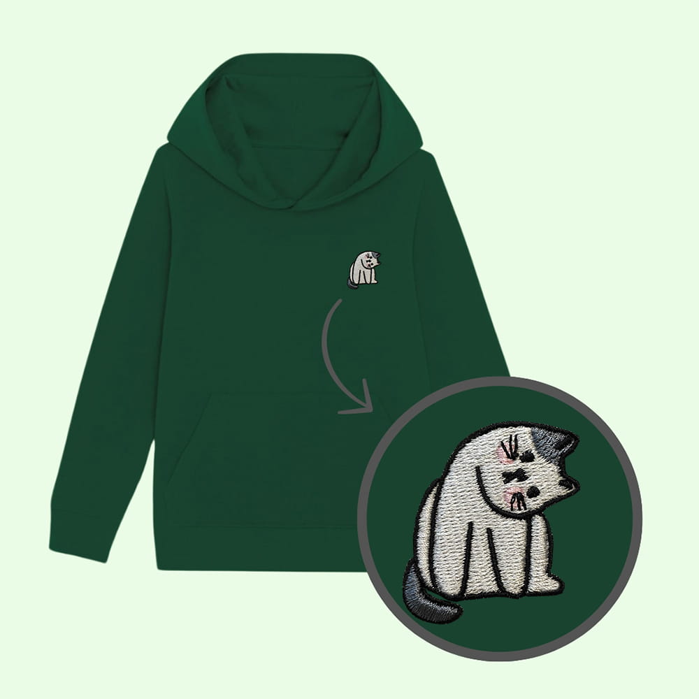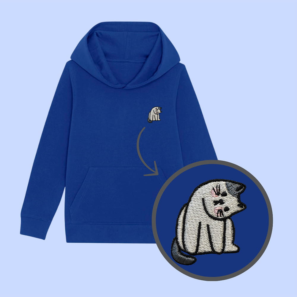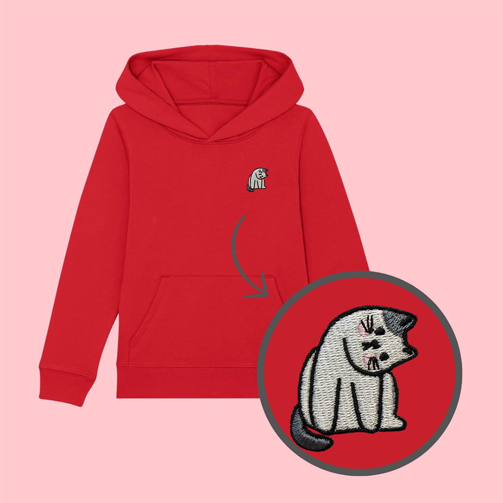 Bluza dziecięca z haftowanym kotkiem - taki sam model, jak bluzy dla dorosłych (w bluzach dla dzieci brak sznurka pod szyją).