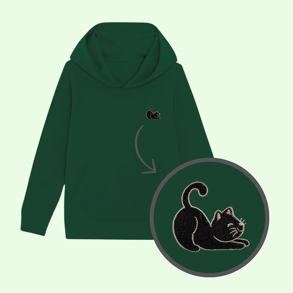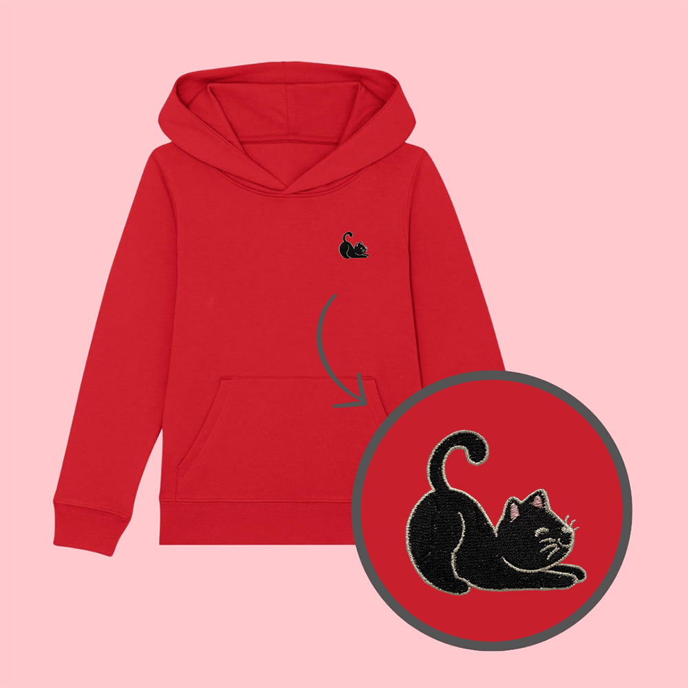 Bluza dziecięca z wyhaftowanym czarnym kotkiem - taki sam model, jak bluzy dla dorosłych (w bluzach dla dzieci brak sznurka pod szyją).