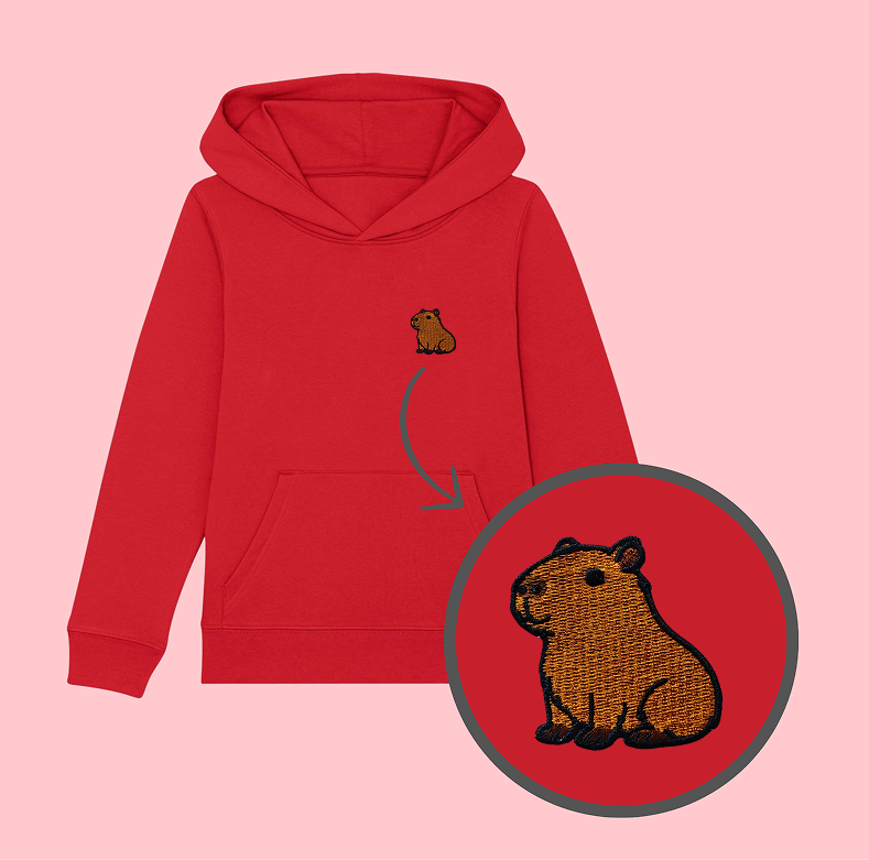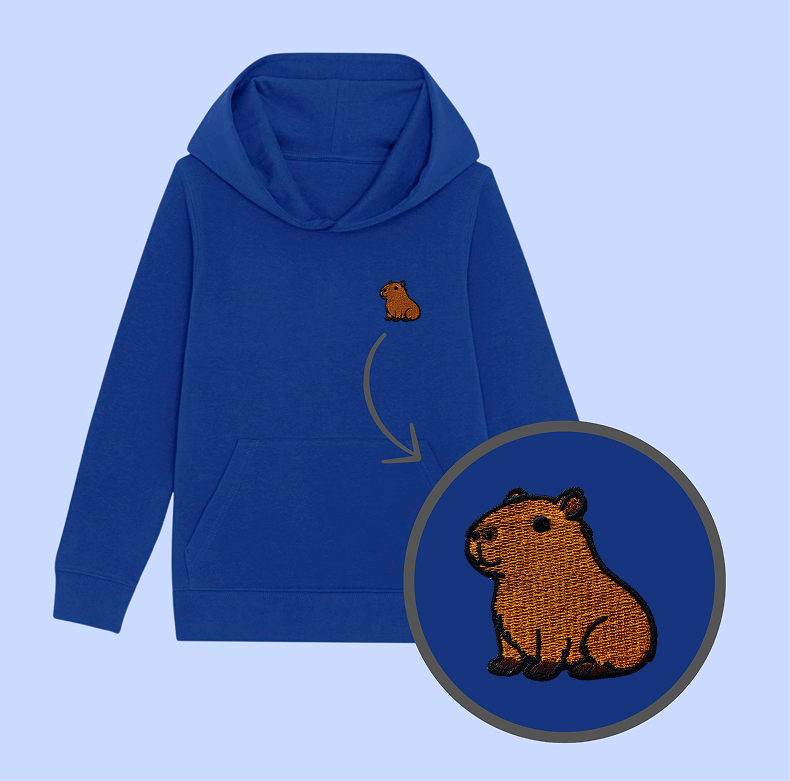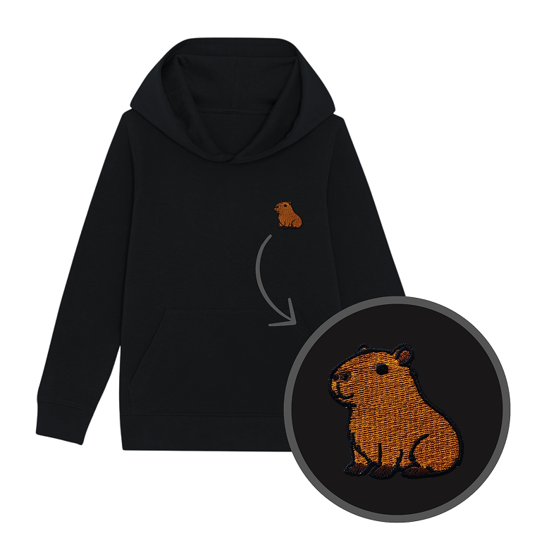 Bluza dziecięca z haftowaną kapibarą - taki sam model, jak bluzy dla dorosłych (w bluzach dla dzieci brak sznurka pod szyją).