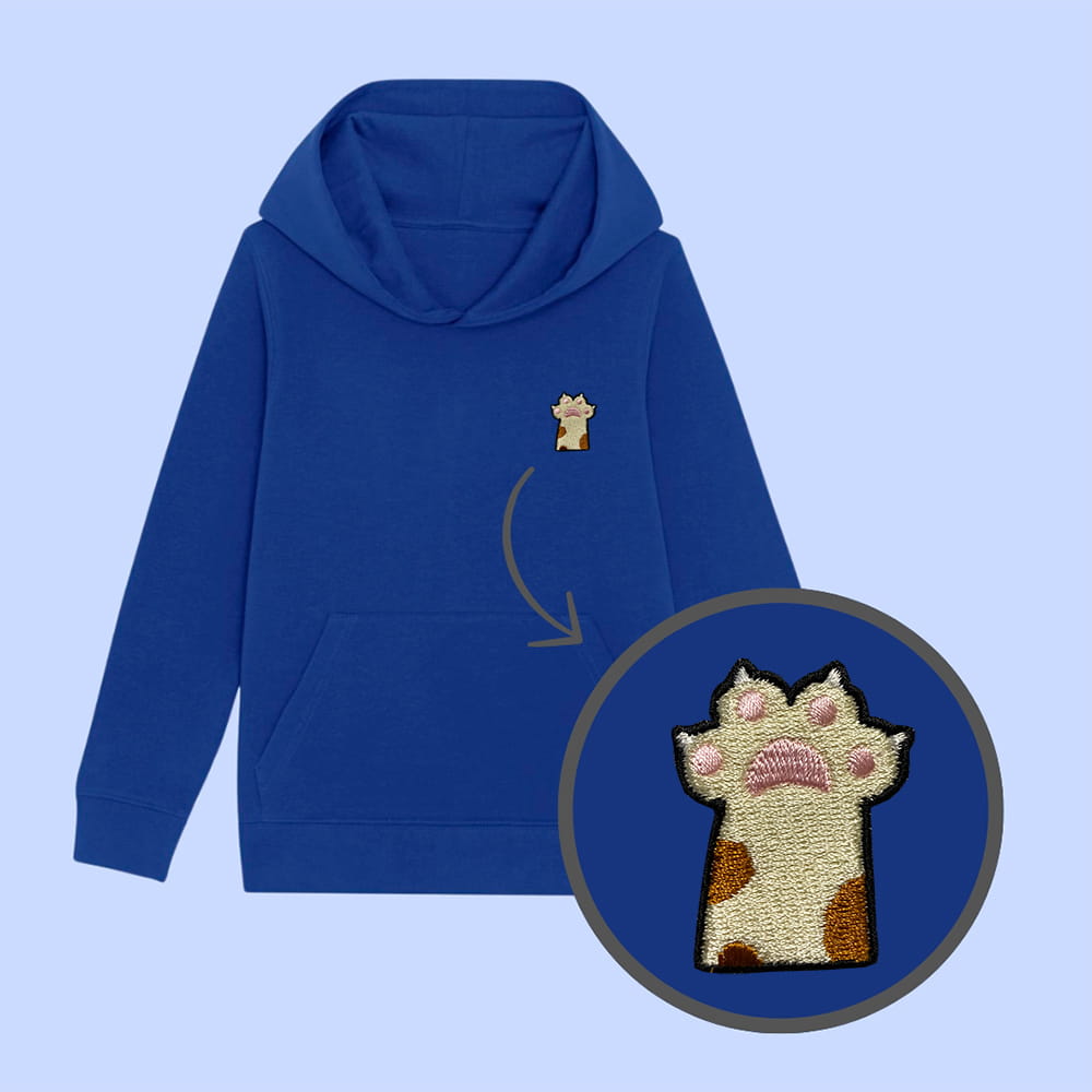 Bluza dziecięca z wyhaftowaną kocią łapką z pazurkami - taki sam model, jak bluzy dla dorosłych (w bluzach dla dzieci brak sznurka pod szyją).
