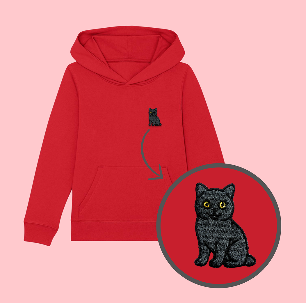 Bluza dziecięca z haftem KOT BRYTYJSKI - taki sam model, jak bluzy dla dorosłych (w bluzach dla dzieci brak sznurka pod szyją).