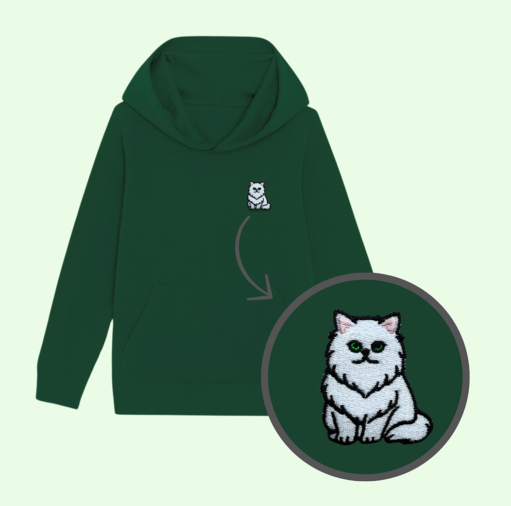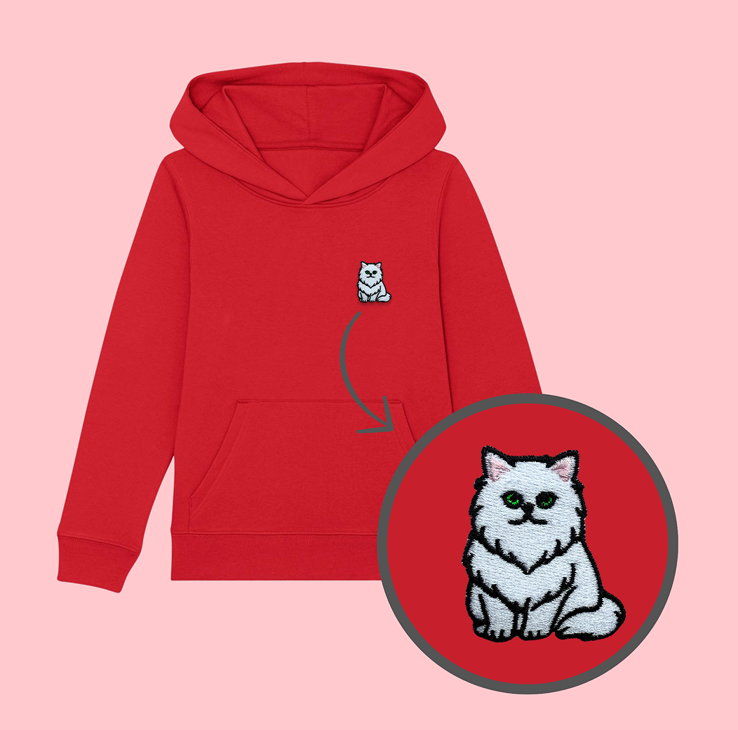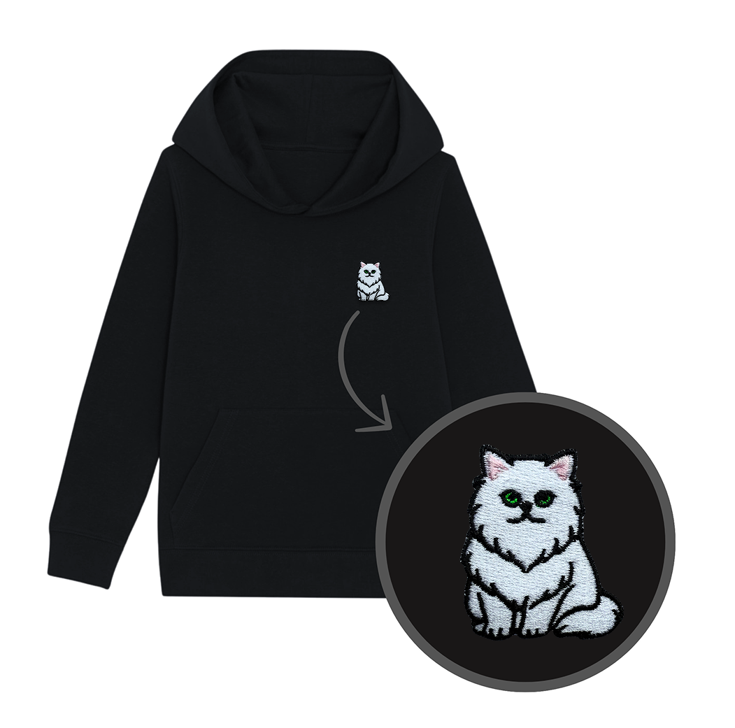 Bluza dziecięca z haftem KOT PERSKI BIAŁY - taki sam model, jak bluzy dla dorosłych (w bluzach dla dzieci brak sznurka pod szyją).
