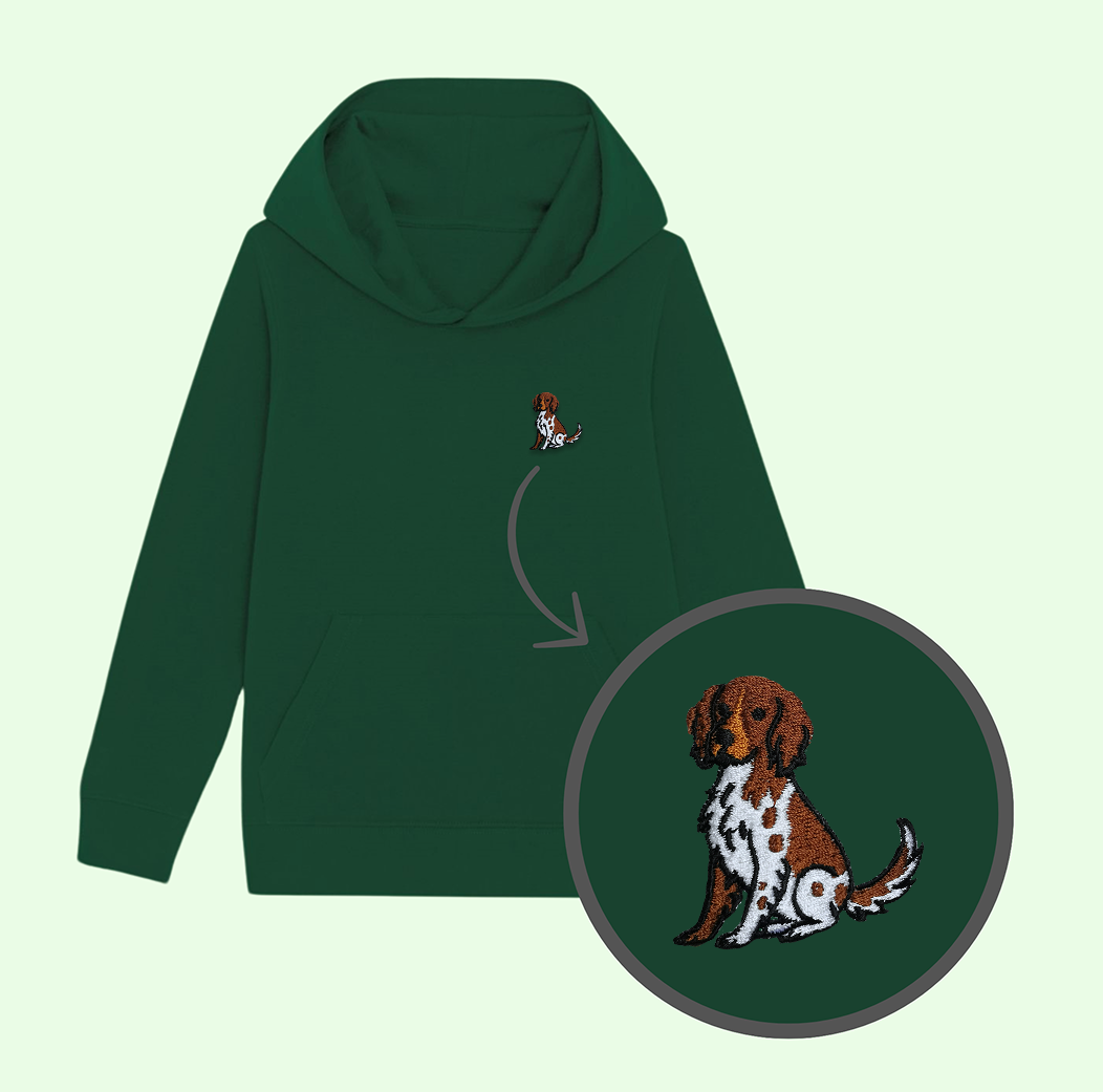 Bluza dziecięca z haftowanym małym münsterländerem - taki sam model, jak bluzy dla dorosłych (w bluzach dla dzieci brak sznurka pod szyją).