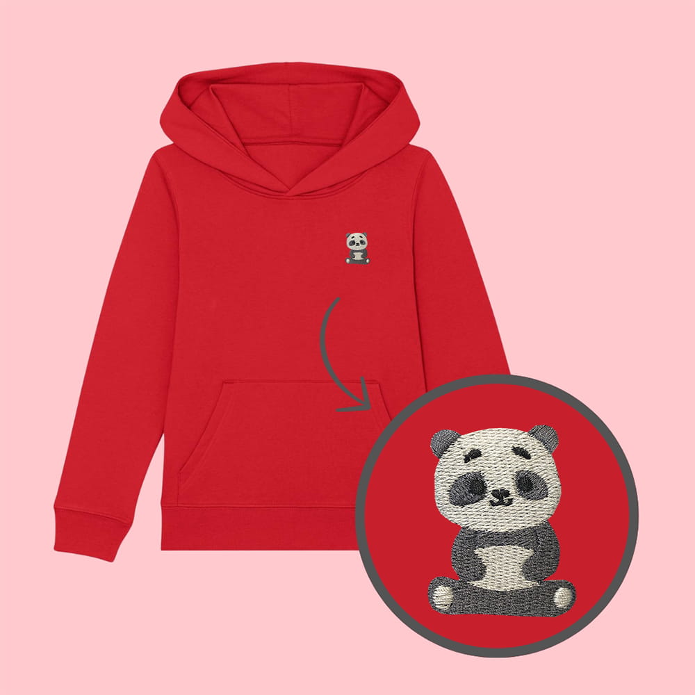 Bluza dziecięca z haftowaną pandą - taki sam model, jak bluzy dla dorosłych (w bluzach dla dzieci brak sznurka pod szyją).