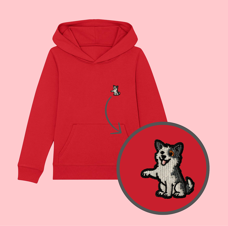 Bluza dziecięca z haftowem PIES KUNDELEK ŁAPA - taki sam model, jak bluzy dla dorosłych (w bluzach dla dzieci brak sznurka pod szyją).