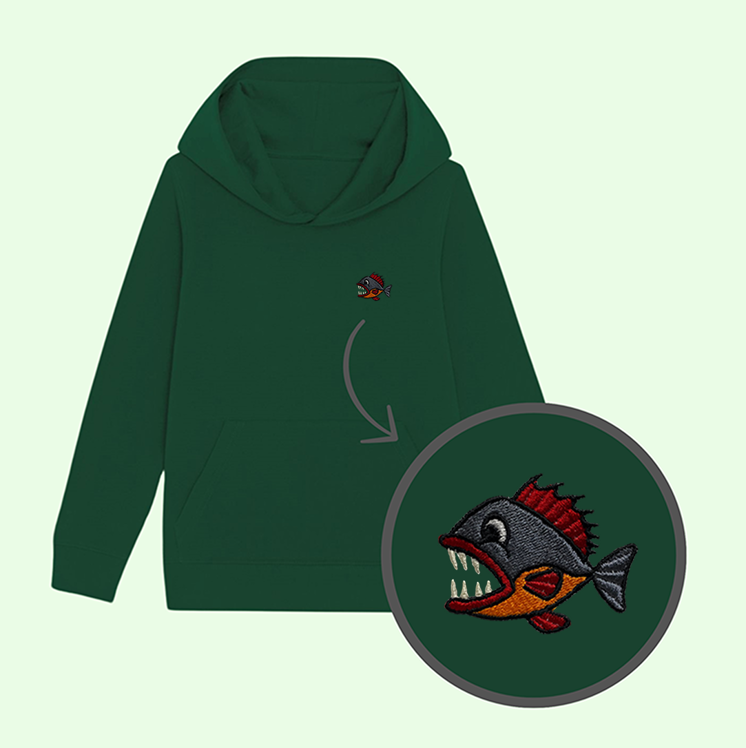 Bluza dziecięca z haftowaną piranią - taki sam model, jak bluzy dla dorosłych (w bluzach dla dzieci brak sznurka pod szyją).