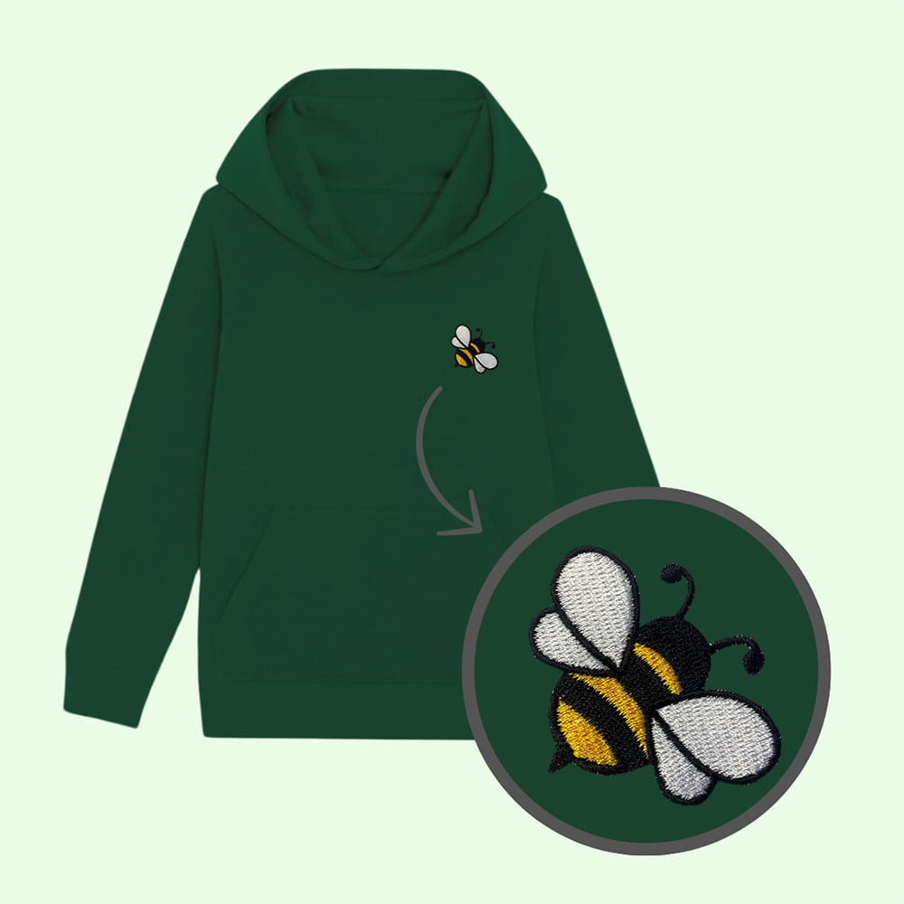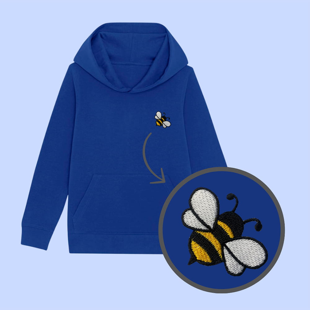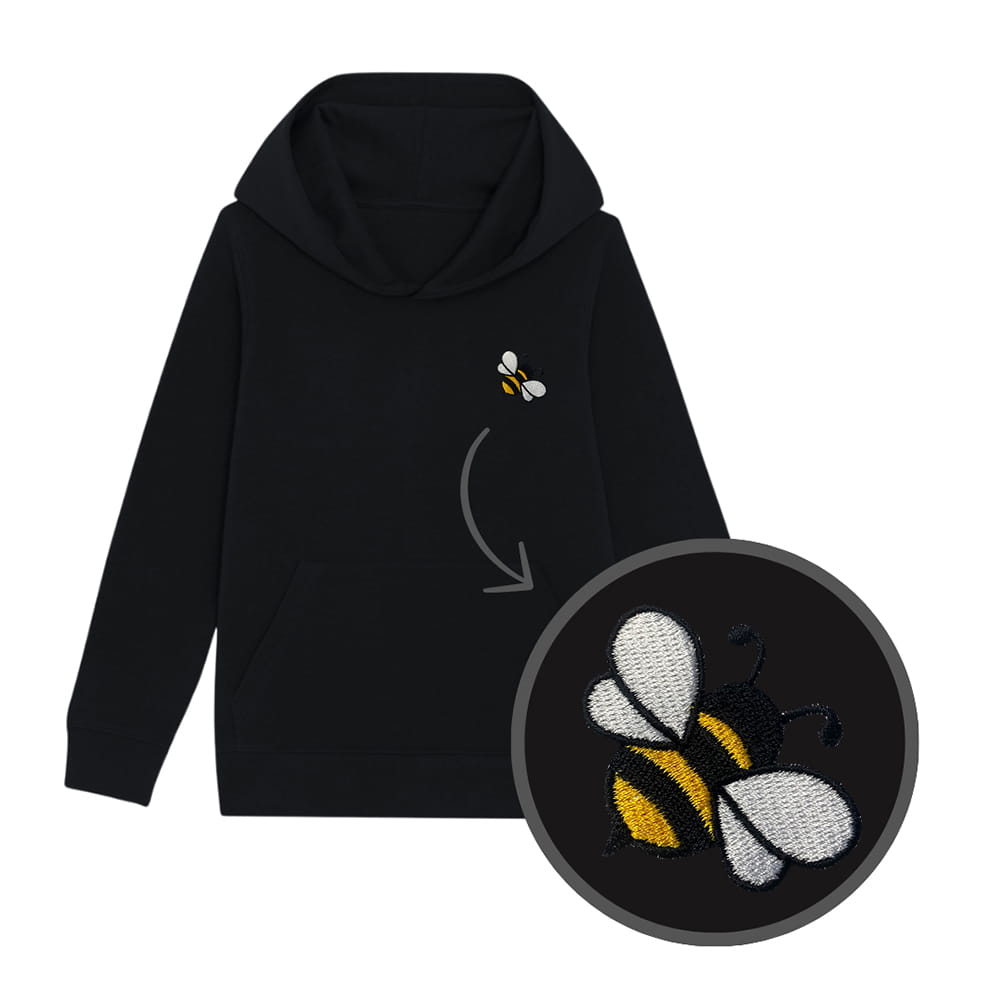 Bluza dziecięca z wyhaftowaną pszczołą - taki sam model, jak bluzy dla dorosłych (w bluzach dla dzieci brak sznurka pod szyją).