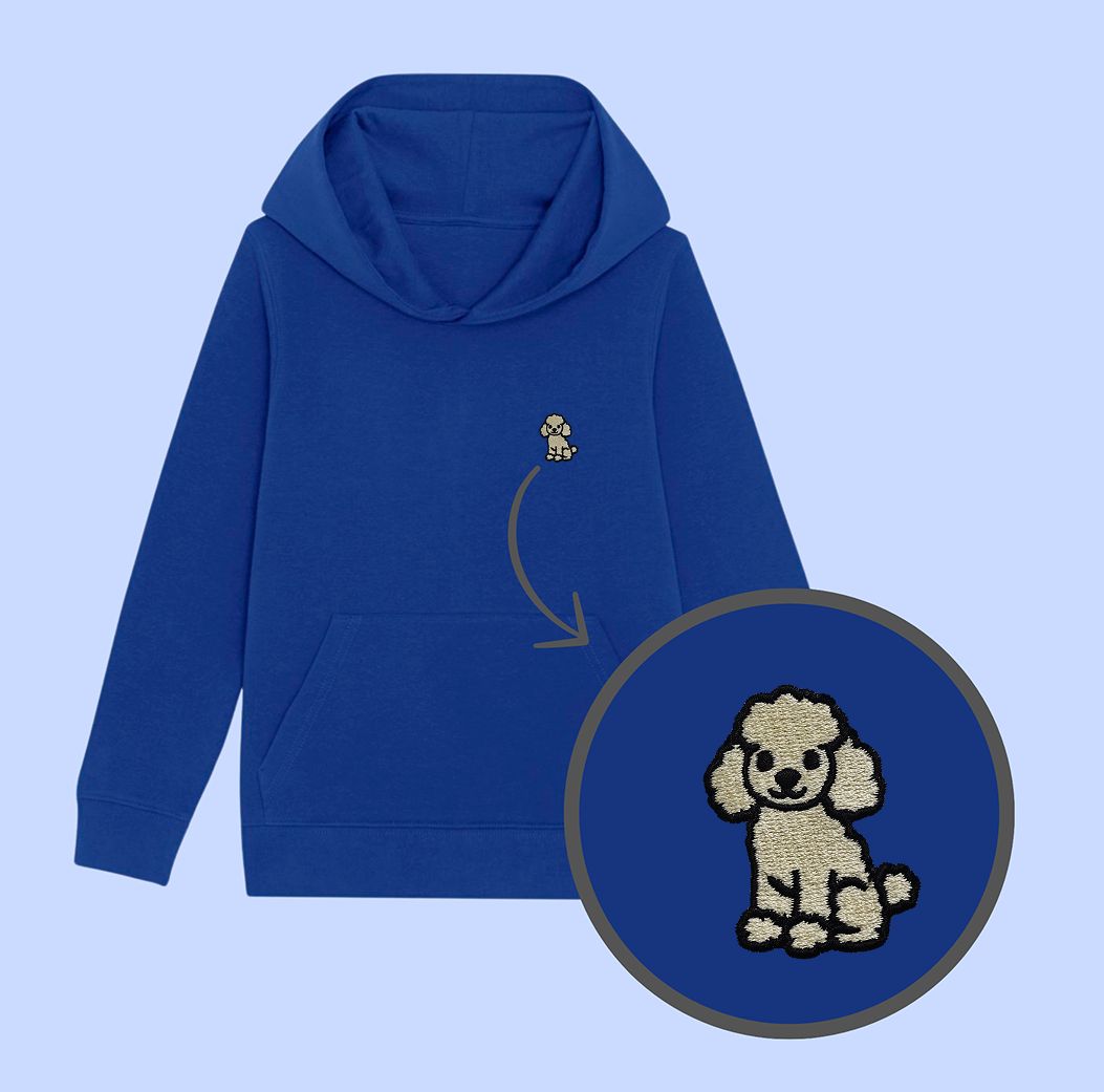 Bluza dziecięca z wyhaftowanym PUDEL BIAŁY - taki sam model, jak bluzy dla dorosłych (w bluzach dla dzieci brak sznurka pod szyją).
