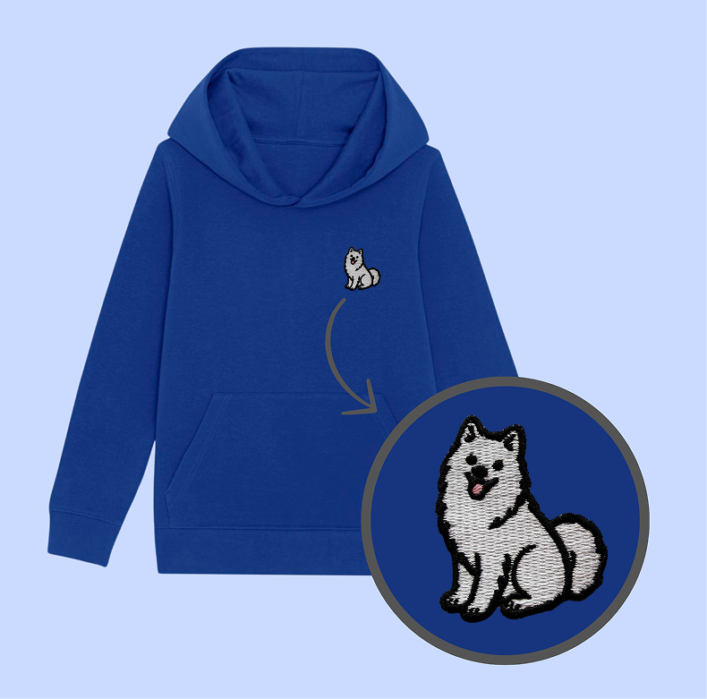 Bluza dziecięca z wyhaftowanym samoyedem - taki sam model, jak bluzy dla dorosłych (w bluzach dla dzieci brak sznurka pod szyją).