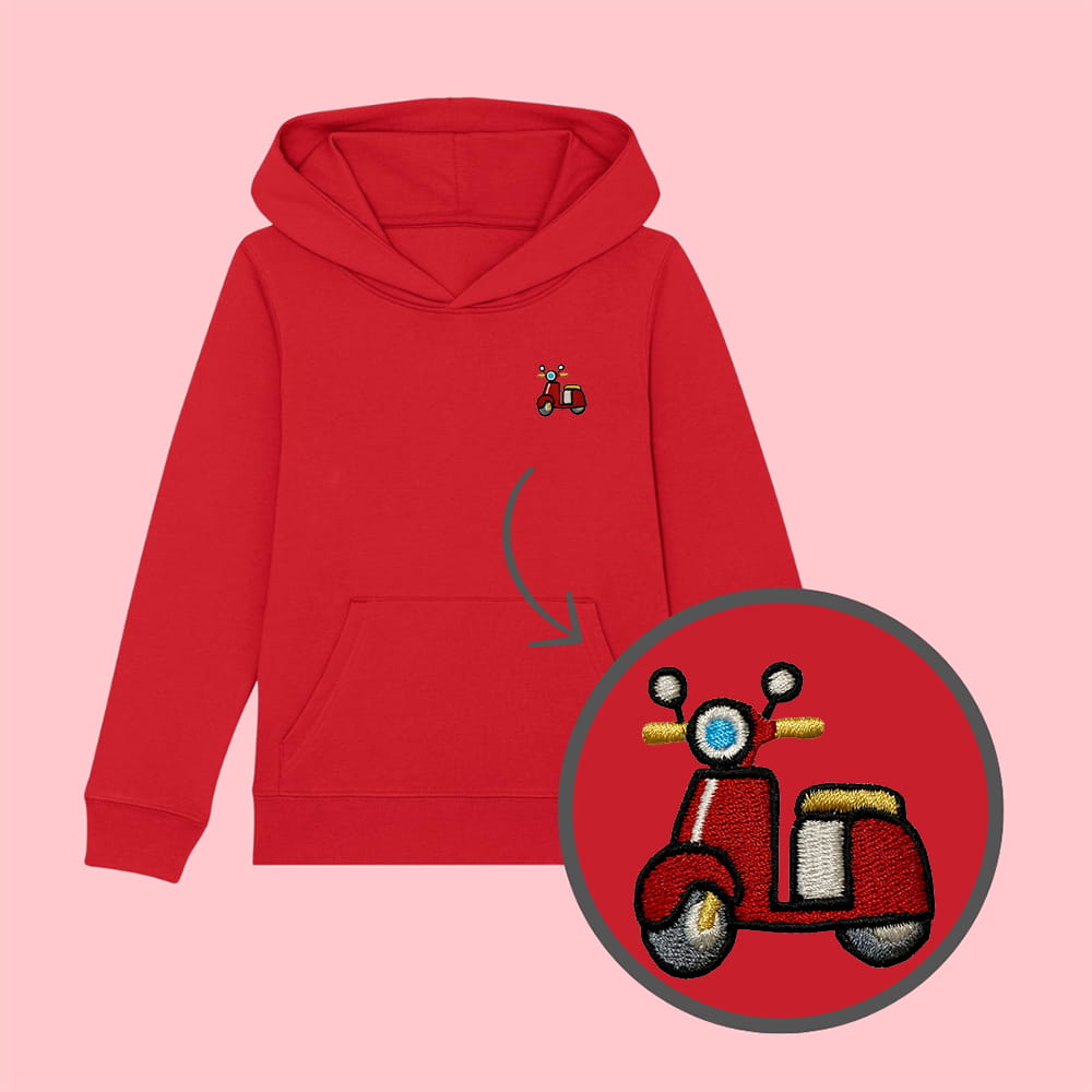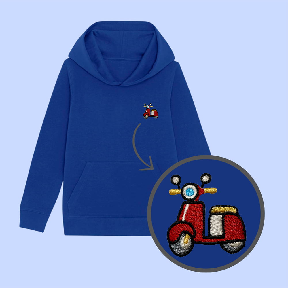 Bluza dziecięca z wyhaftowanym skuterem - taki sam model, jak bluzy dla dorosłych (w bluzach dla dzieci brak sznurka pod szyją).