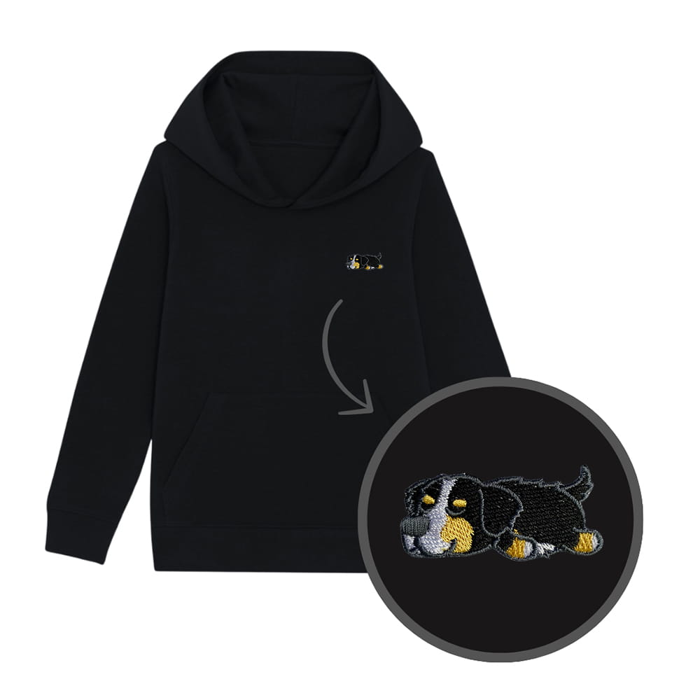 Bluza dziecięca z haftowanym berneńskim psem pasterskim - taki sam model, jak bluzy dla dorosłych (w bluzach dla dzieci brak sznurka pod szyją).