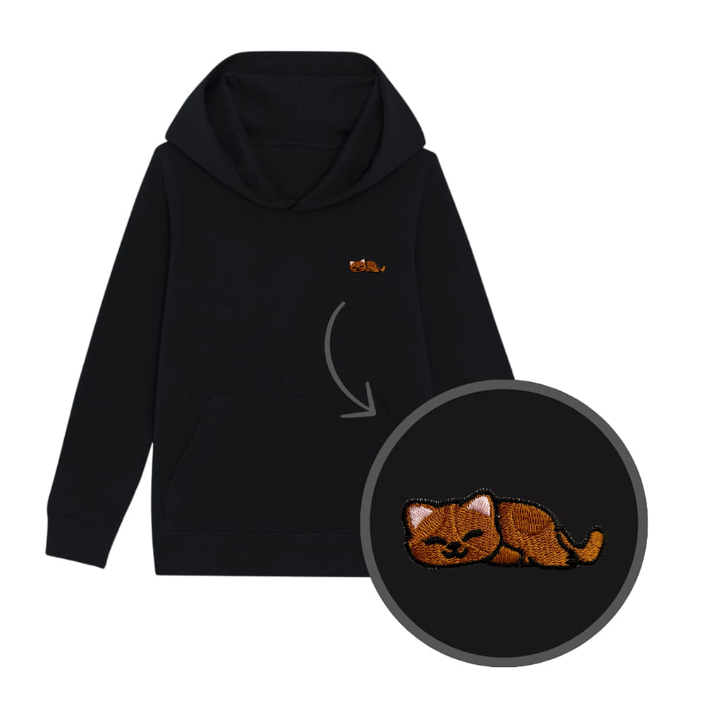 Bluza dziecięca z haftowanym kotkiem w wersji śpiącej - taki sam model, jak bluzy dla dorosłych (w bluzach dla dzieci brak sznurka pod szyją).