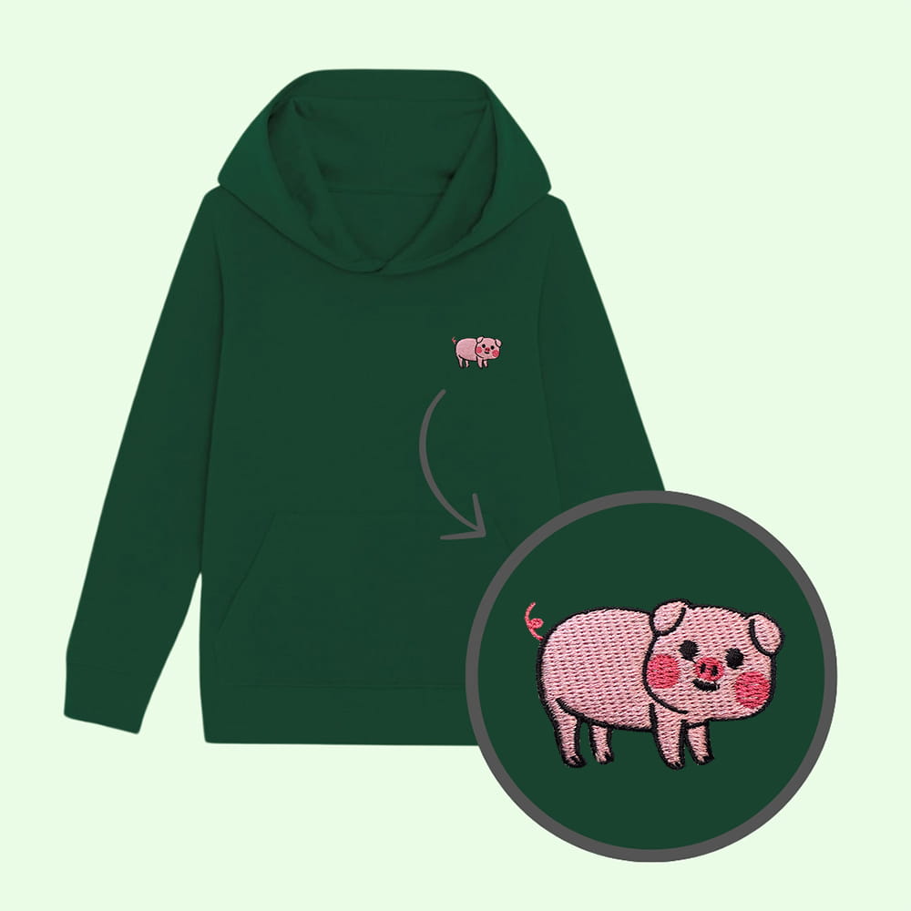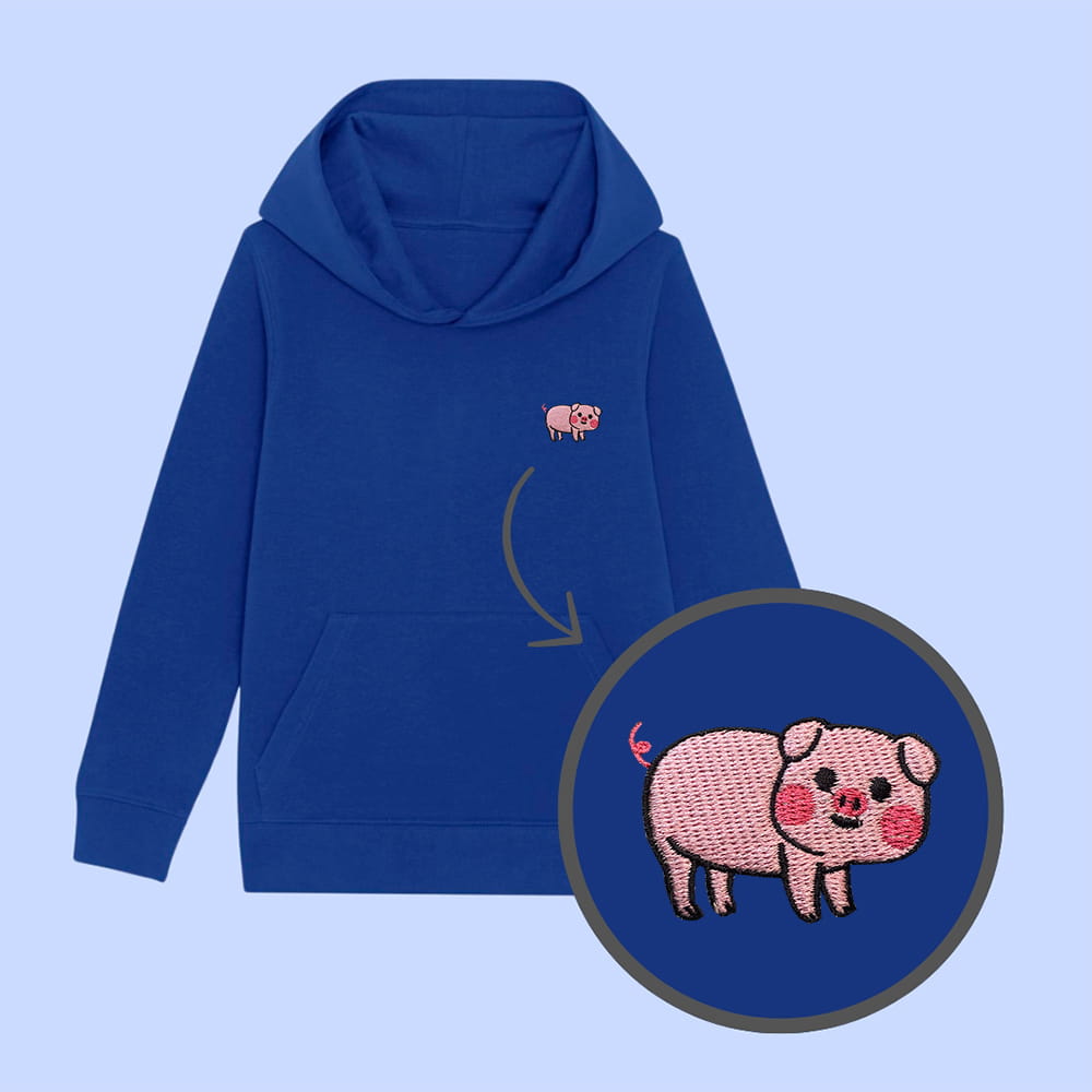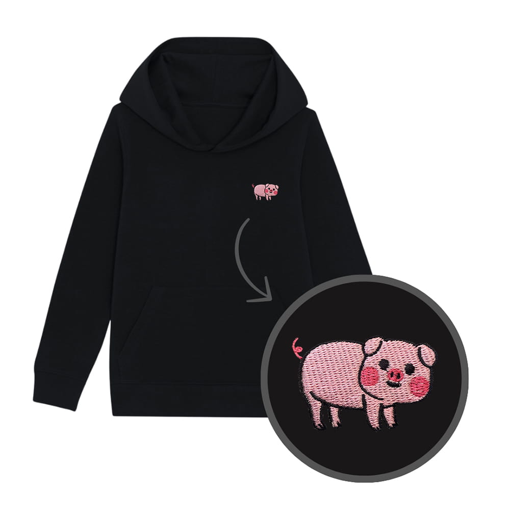 Bluza dziecięca z haftowaną świnką - taki sam model, jak bluzy dla dorosłych (w bluzach dla dzieci brak sznurka pod szyją).