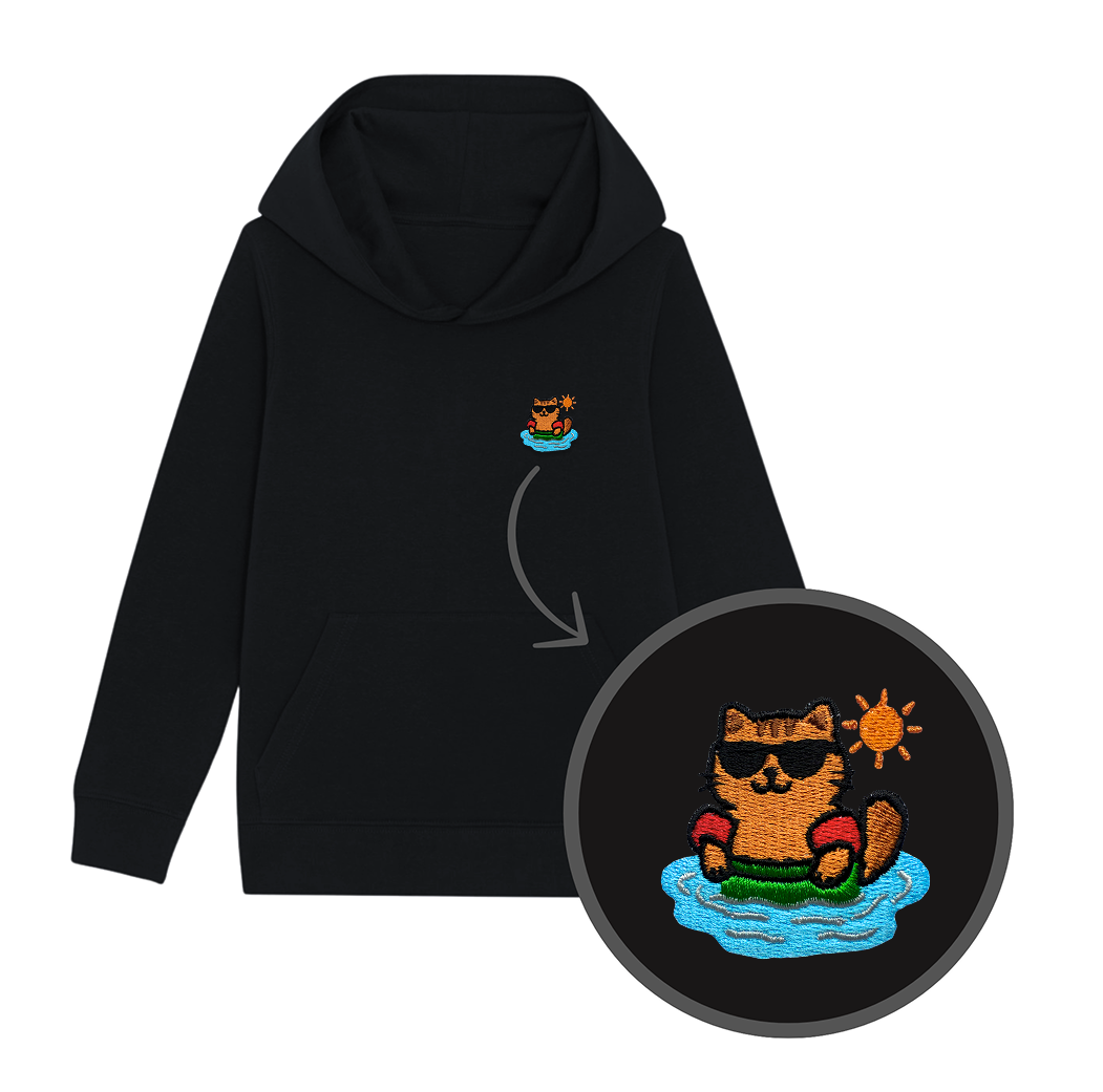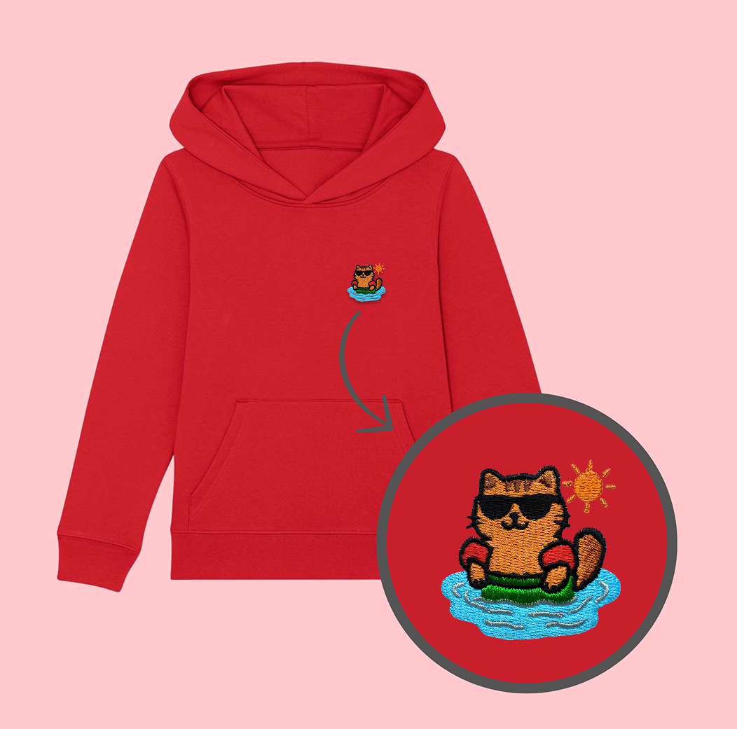 Bluza dziecięca z haftowanym WAKACYJNYM KOTKIEM- taki sam model, jak bluzy dla dorosłych (w bluzach dla dzieci brak sznurka pod szyją).