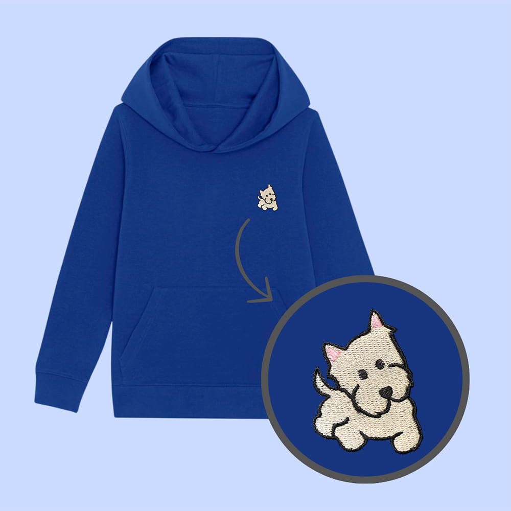 Bluza dziecięca z haftowanym westie - taki sam model, jak bluzy dla dorosłych (w bluzach dla dzieci brak sznurka pod szyją).
