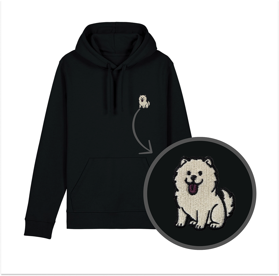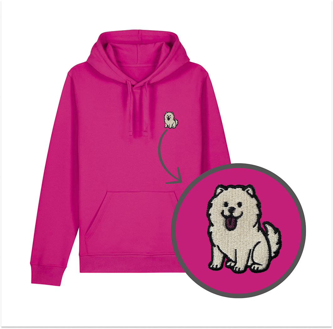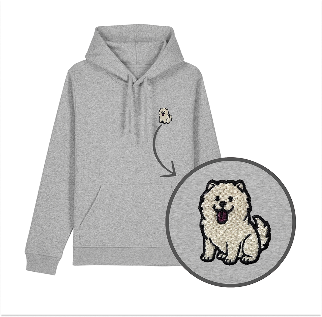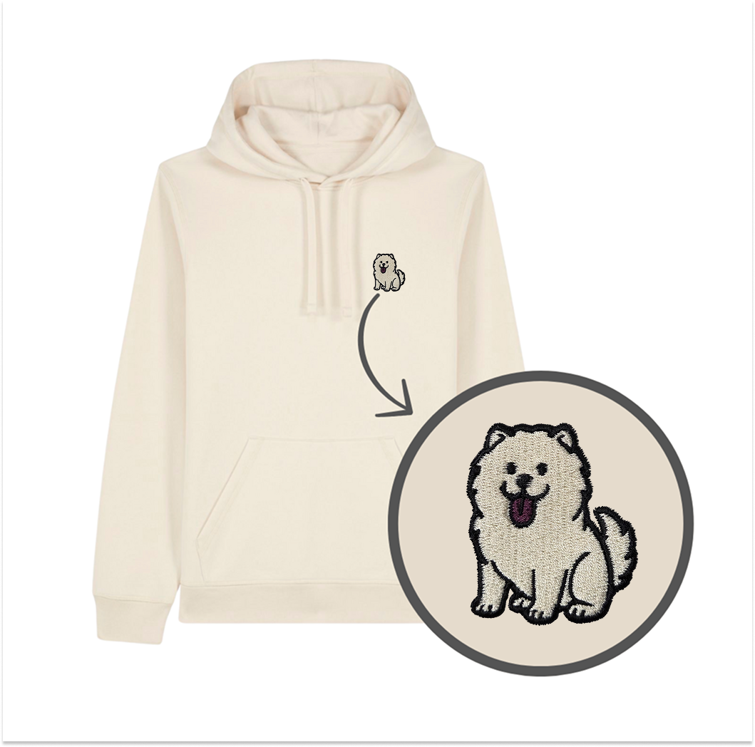 Haftowana bluza z kapturem CHOW CHOW BIAŁY