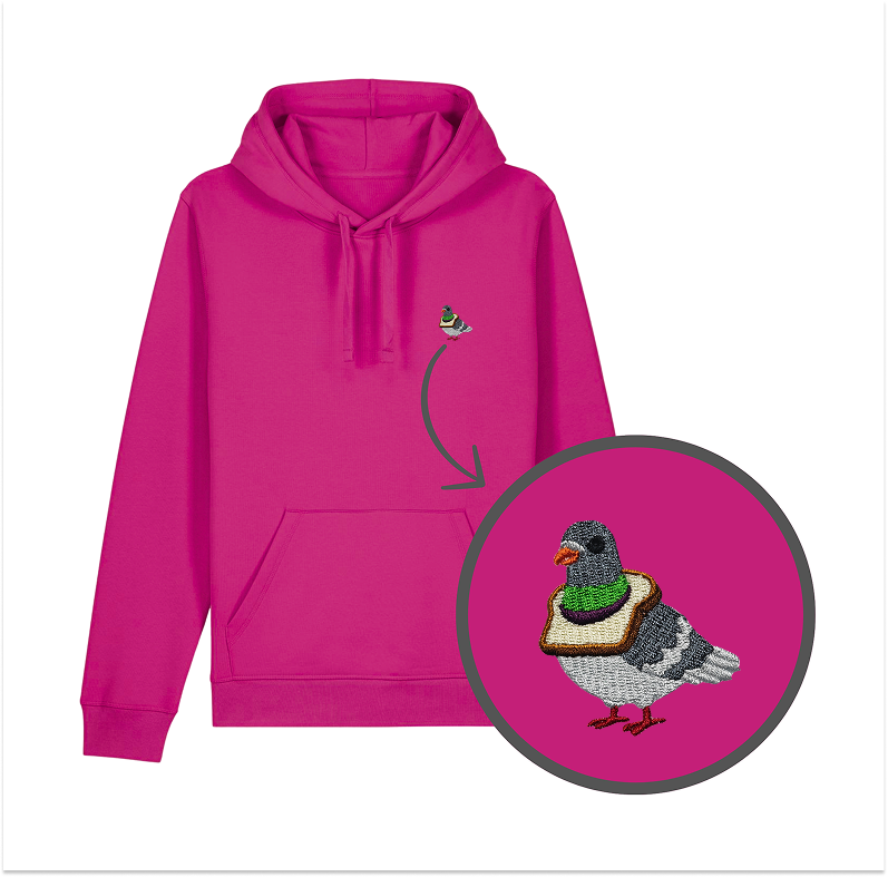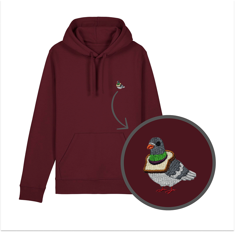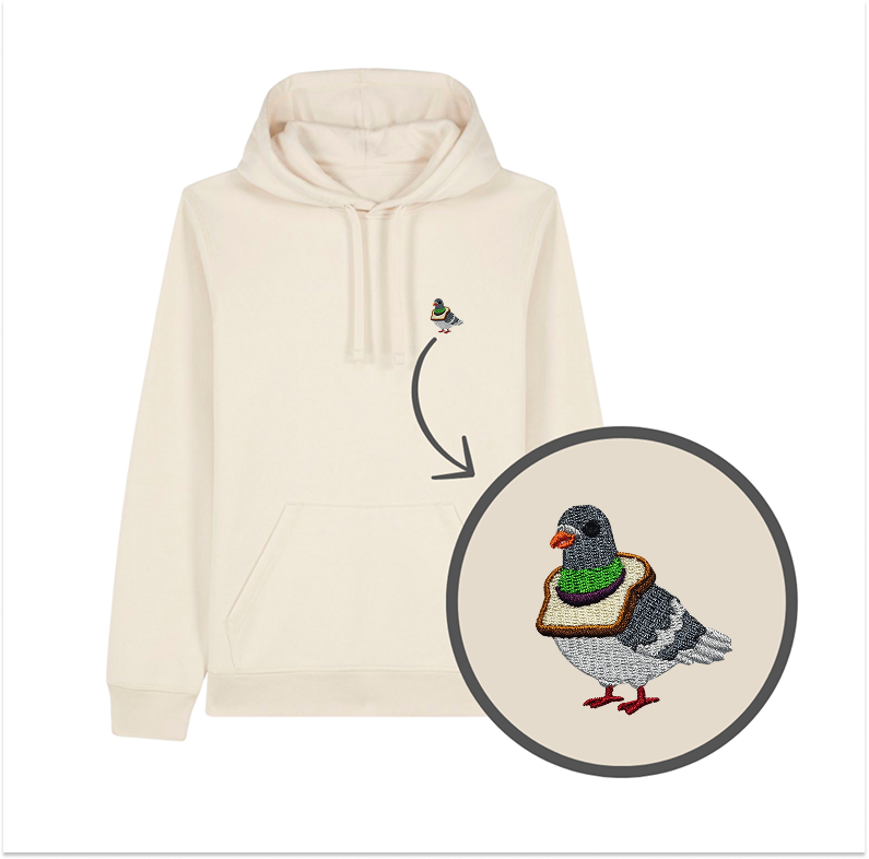 Haftowana bluza z kapturem GOŁĄB Z CHLEBEM