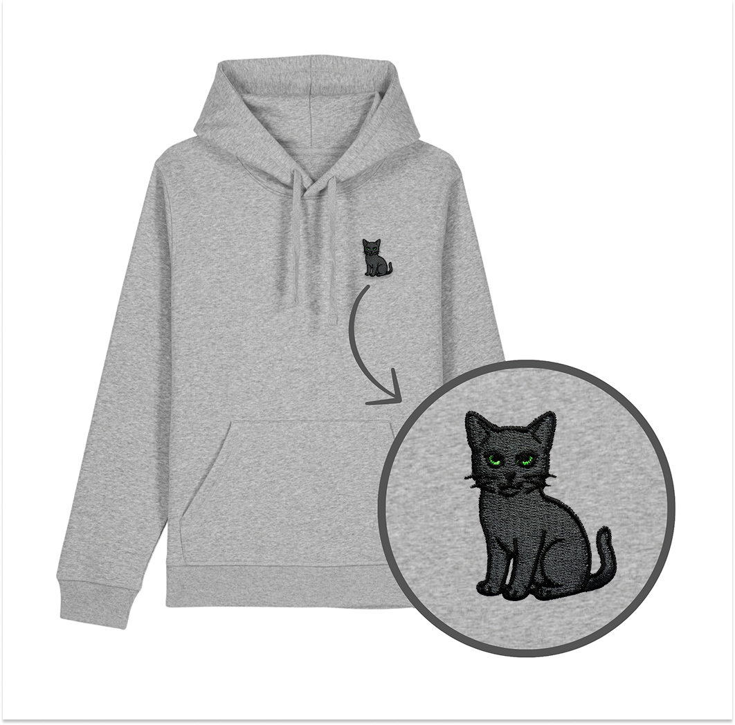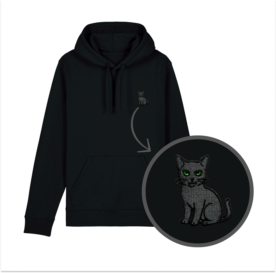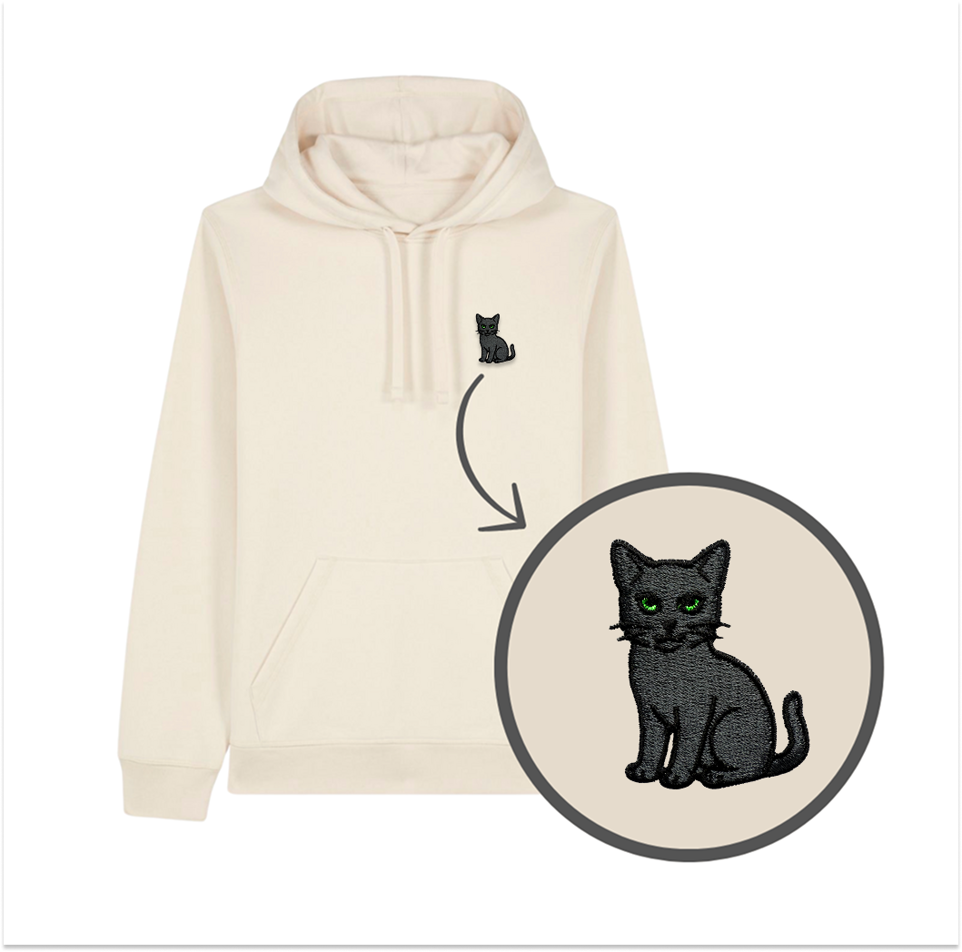 Z kapturem i kieszenią kangurką. Krój unisex pasuje na każdą z płci. Ciepła i bardzo miękka w dotyku. Możesz wybrać dowolny kolor oczu kota – pełna personalizacja pod Ciebie!