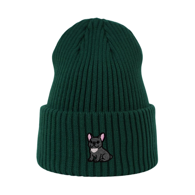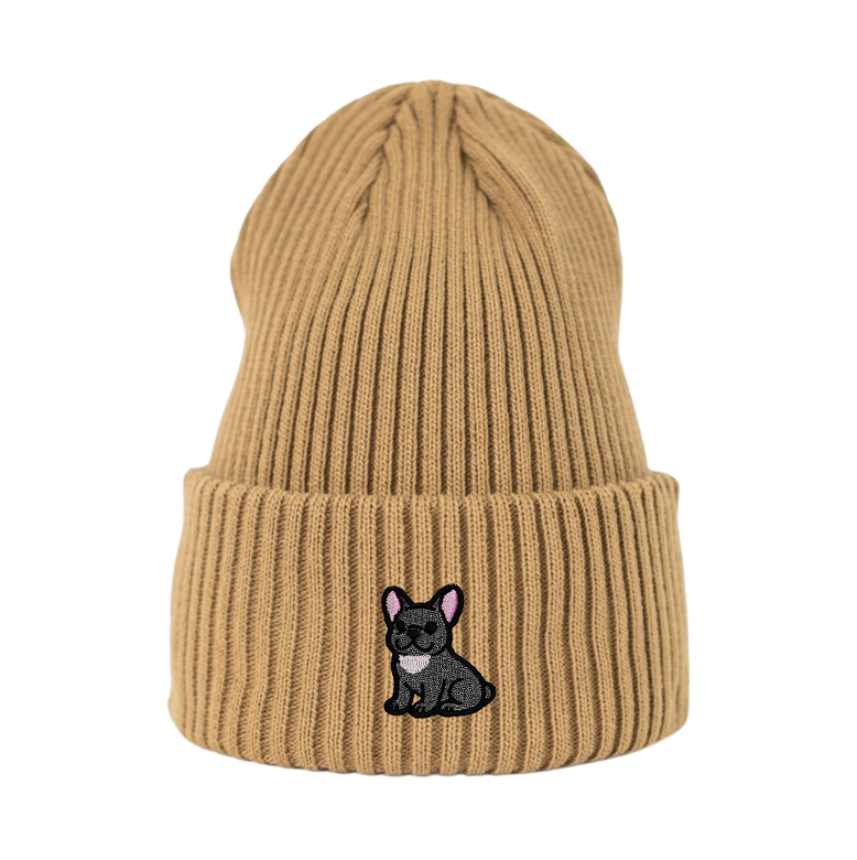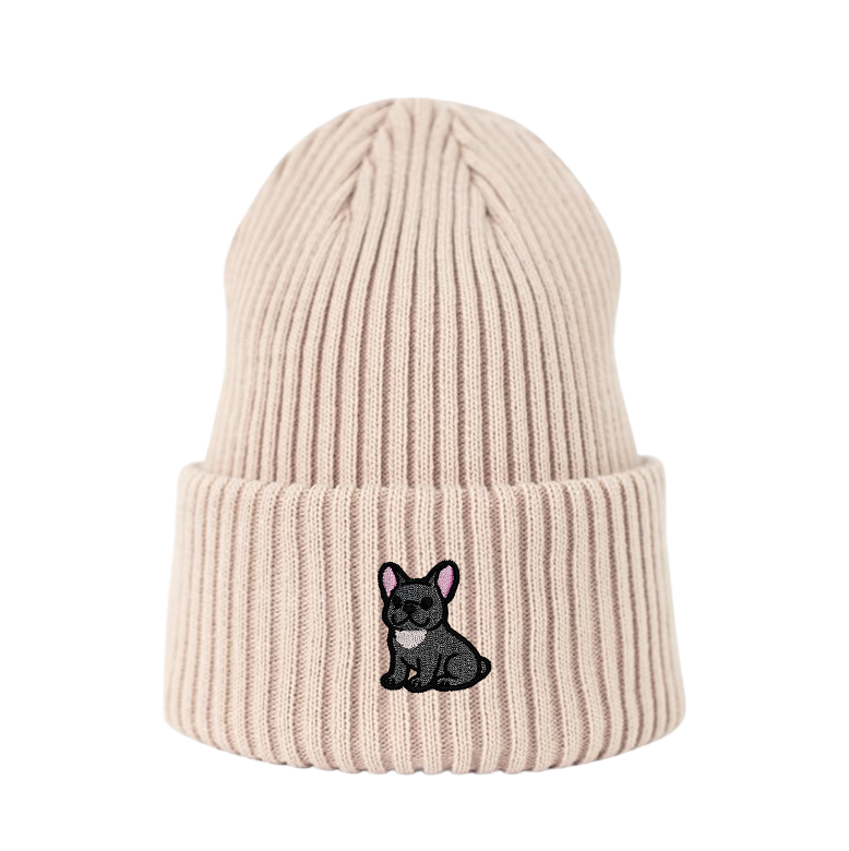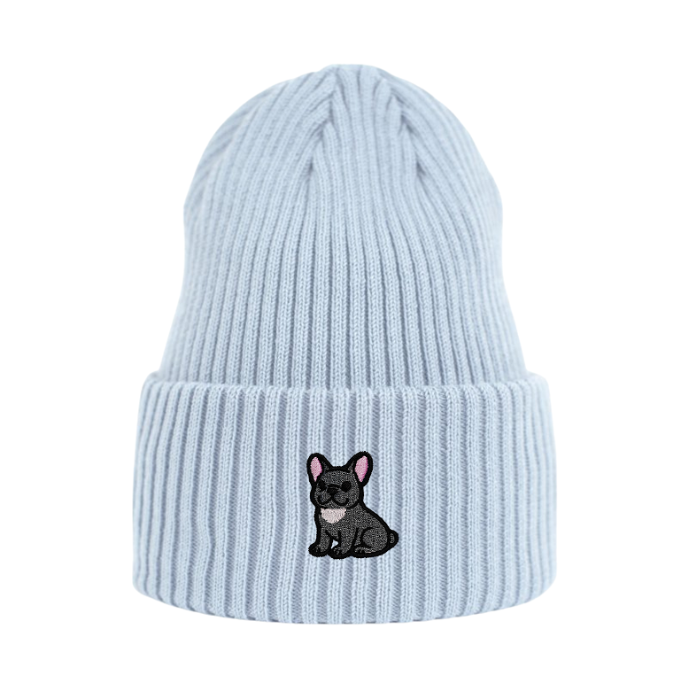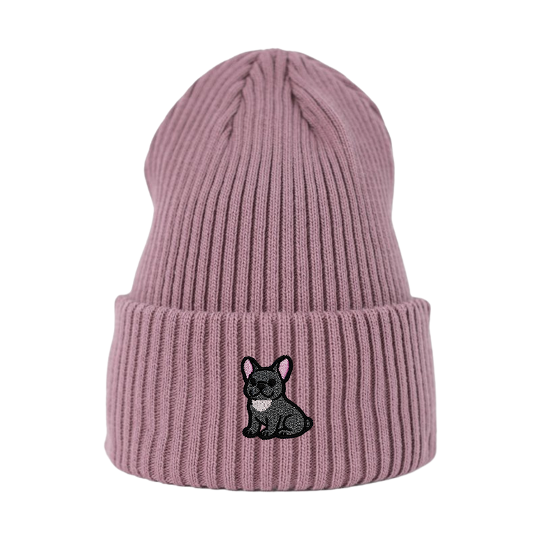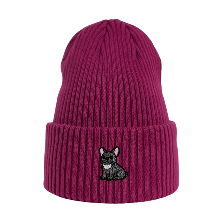 Czapka w typie beanie z haftowanym buldogiem francuskim, która nie tylko ogrzeje Cię w zimne poranki, ale też doda charakteru każdej stylówce. Idealna na spacery, wypady na miasto czy po prostu na wyjścia po ciepłą kawę. Czuj się komfortowo, nawet gdy za oknem hula wiatr!