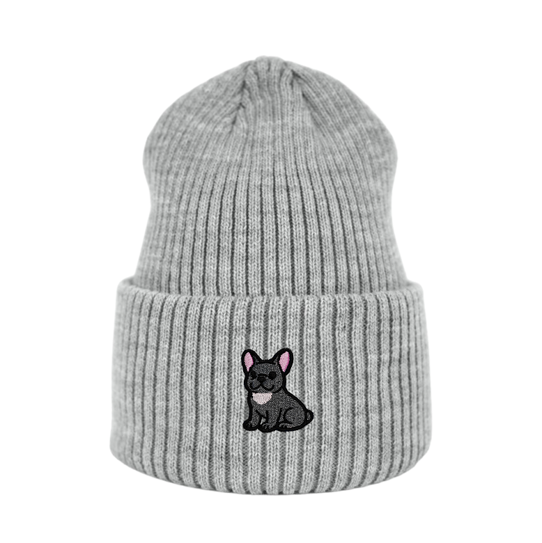 Haftowana czapka beanie - BULDOG FRANCUSKI SZARY
