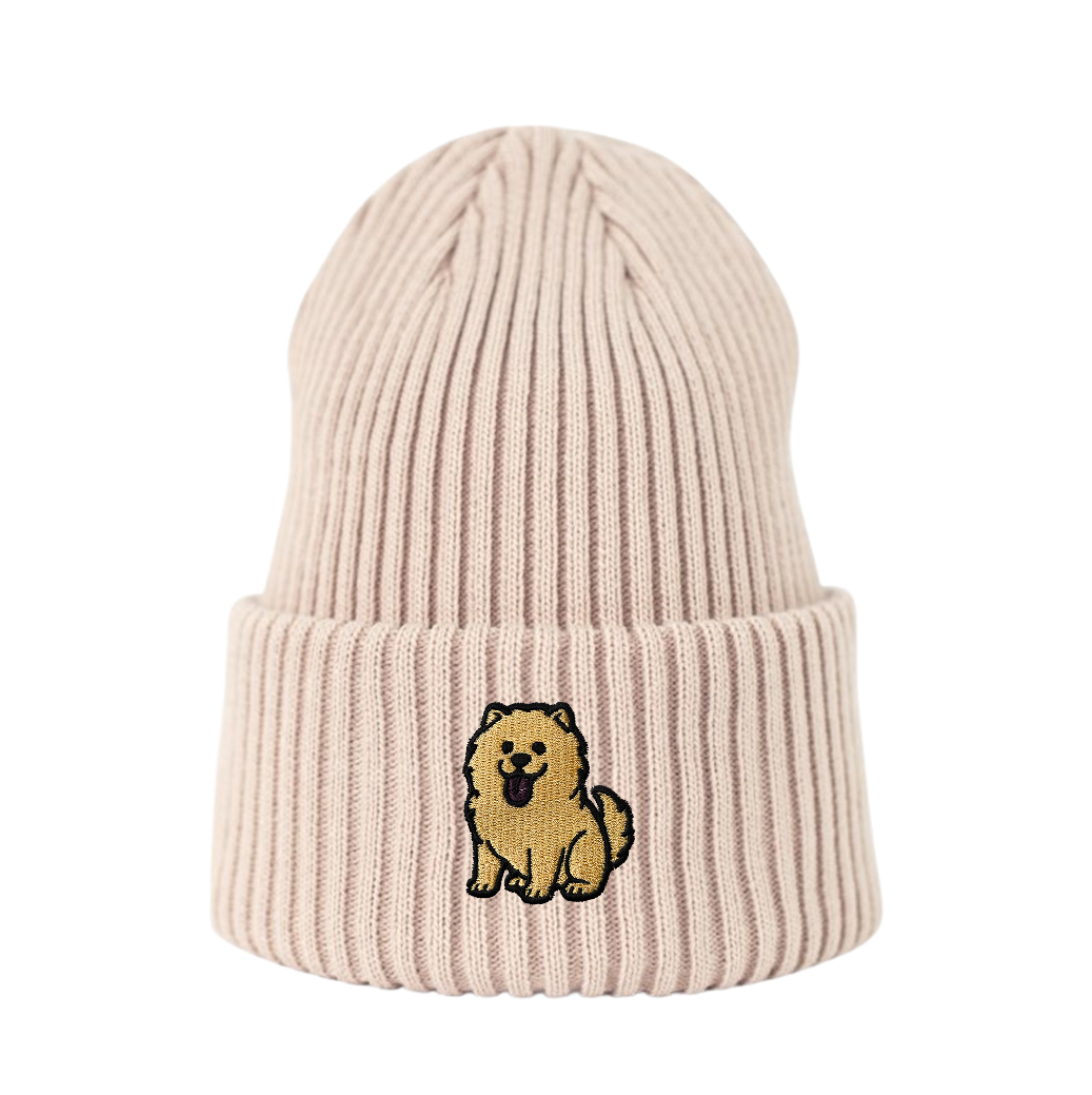 Haftowana czapka beanie - CHOW CHOW BISZKOPTOWY