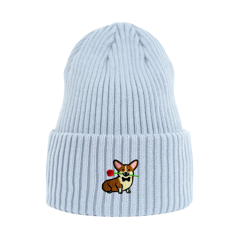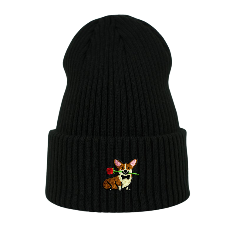 Czapka w typie beanie z haftowanym corgim w walentynkowej odsłonie, która nie tylko ogrzeje Cię w zimne poranki, ale też doda charakteru każdej stylówce. Idealna na spacery, wypady na miasto czy po prostu na wyjścia po ciepłą kawę. Czuj się komfortowo, nawet gdy za oknem hula wiatr!