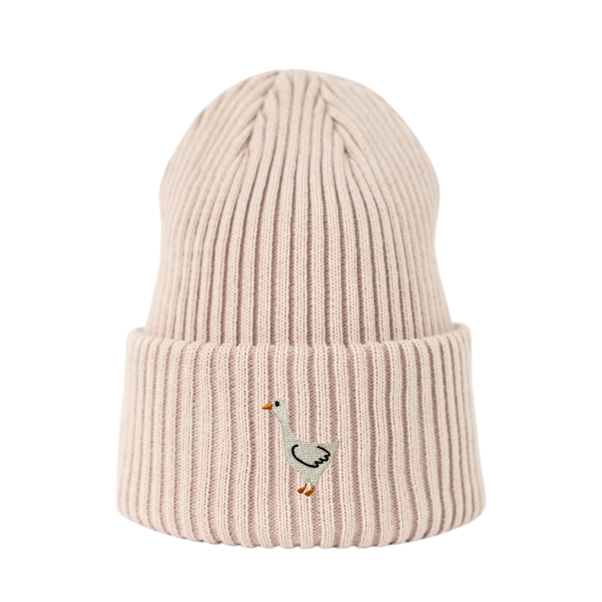Czapka w typie beanie z haftowaną gąską, która nie tylko ogrzeje Cię w zimne poranki, ale też doda charakteru każdej stylówce. Idealna na spacery, wypady na miasto czy po prostu na wyjścia po ciepłą kawę. Czuj się komfortowo, nawet gdy za oknem hula wiatr!