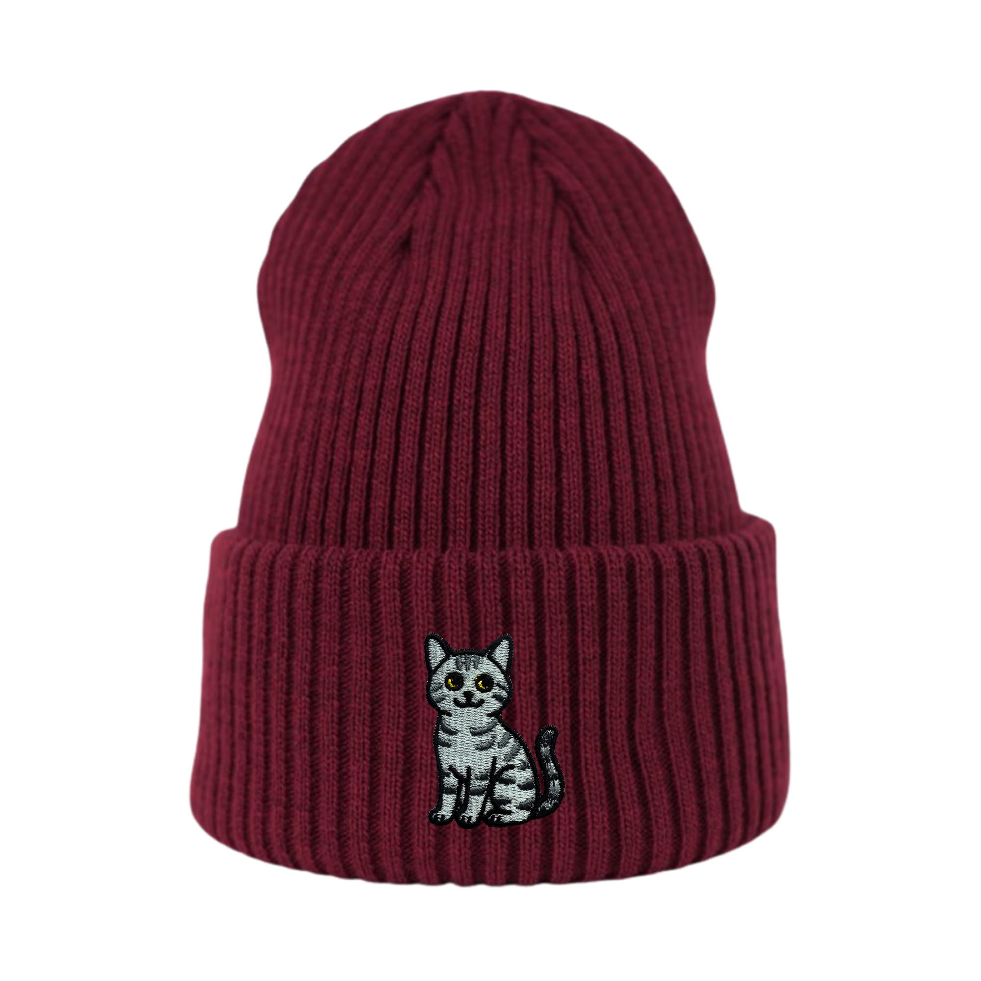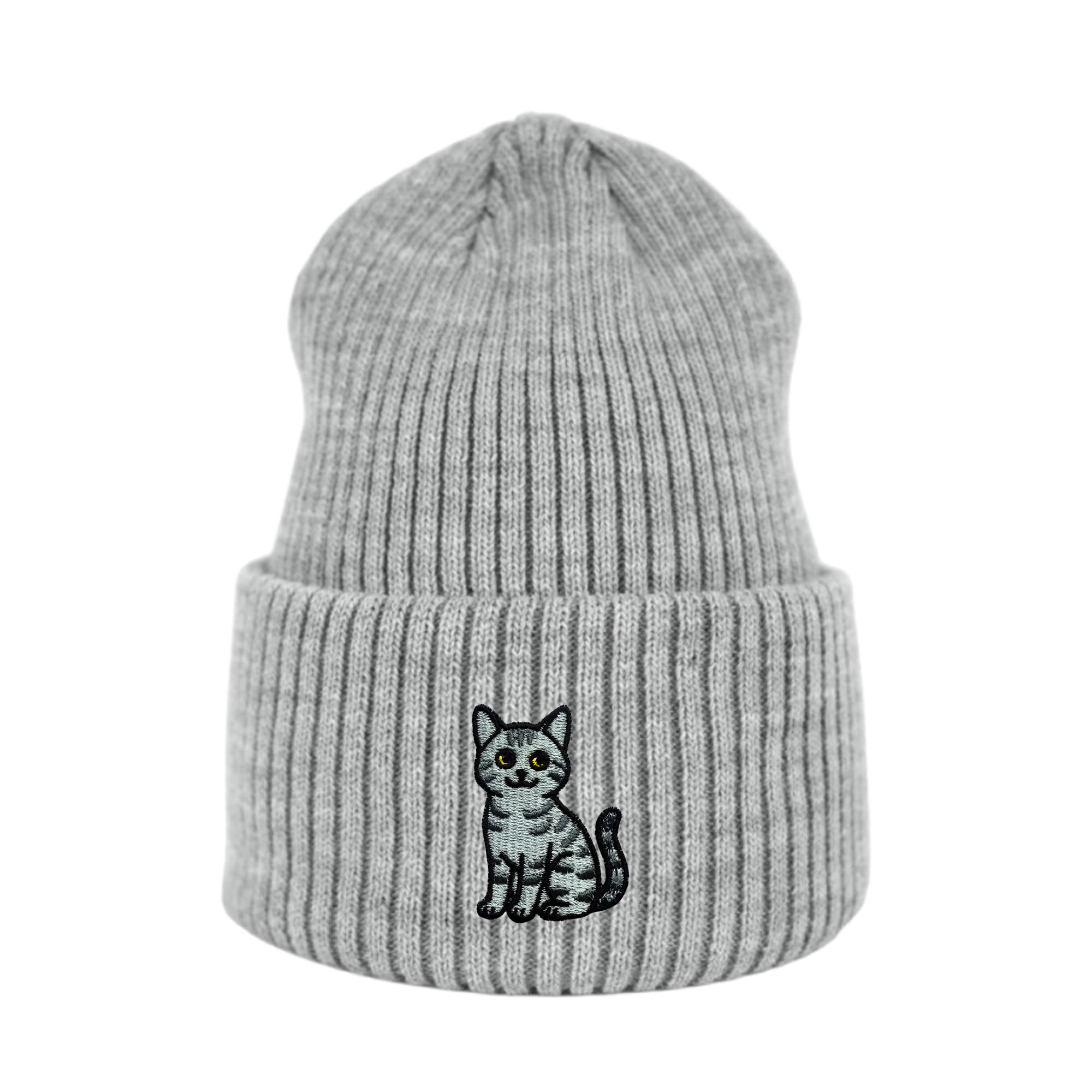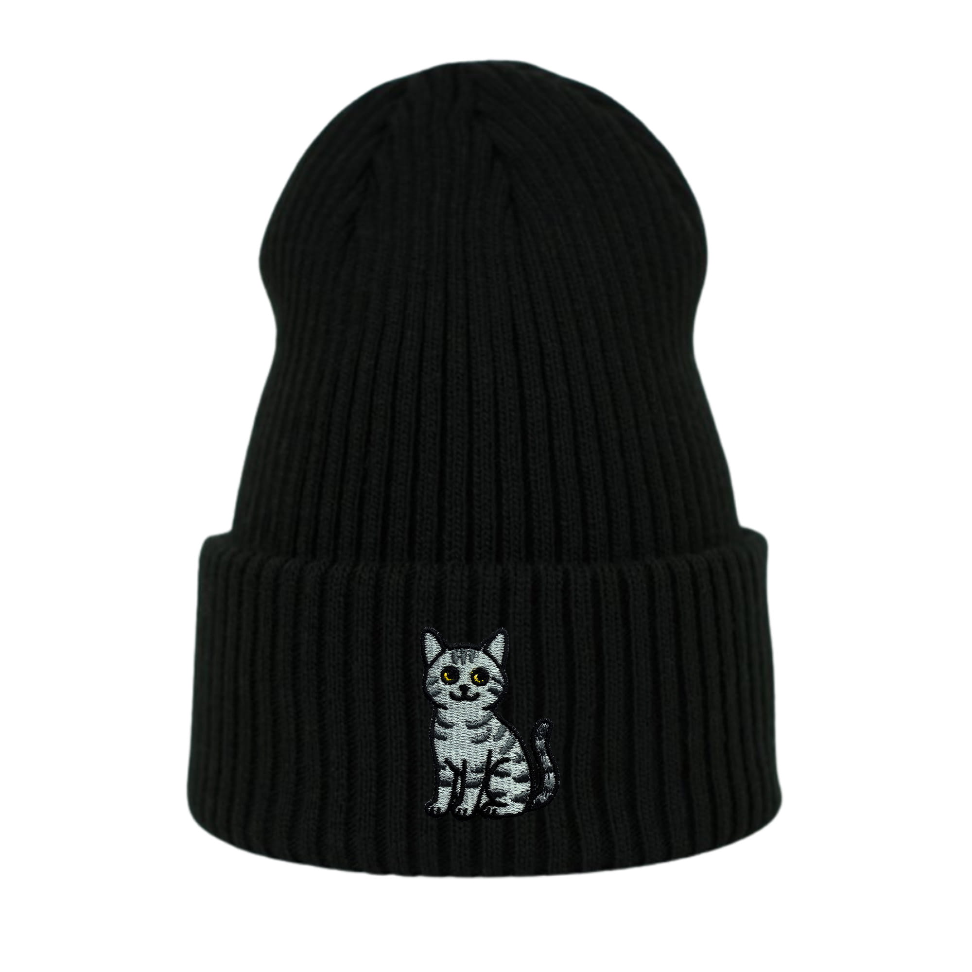 Haftowana czapka beanie - KOT DACHOWIEC SZARY