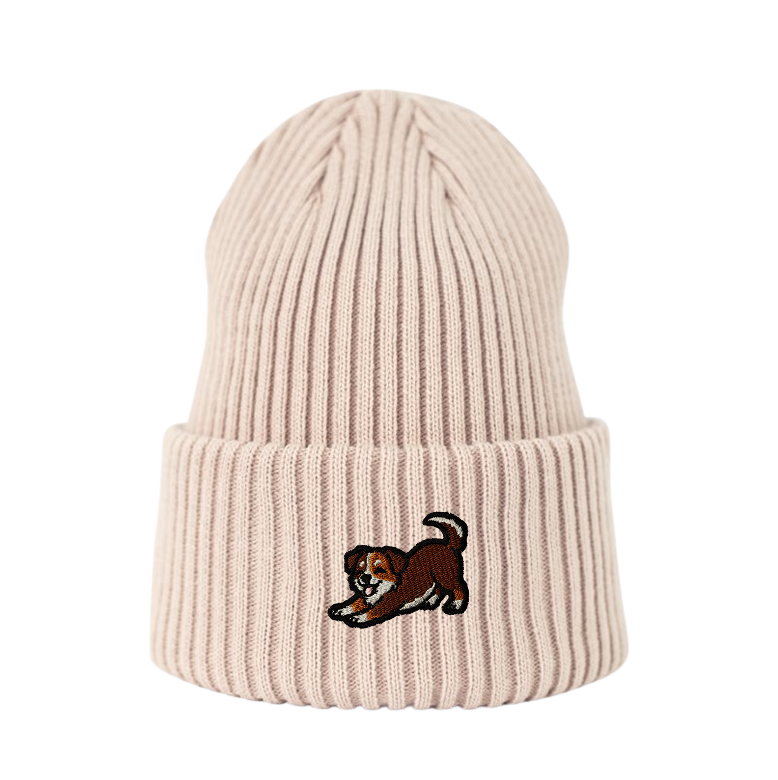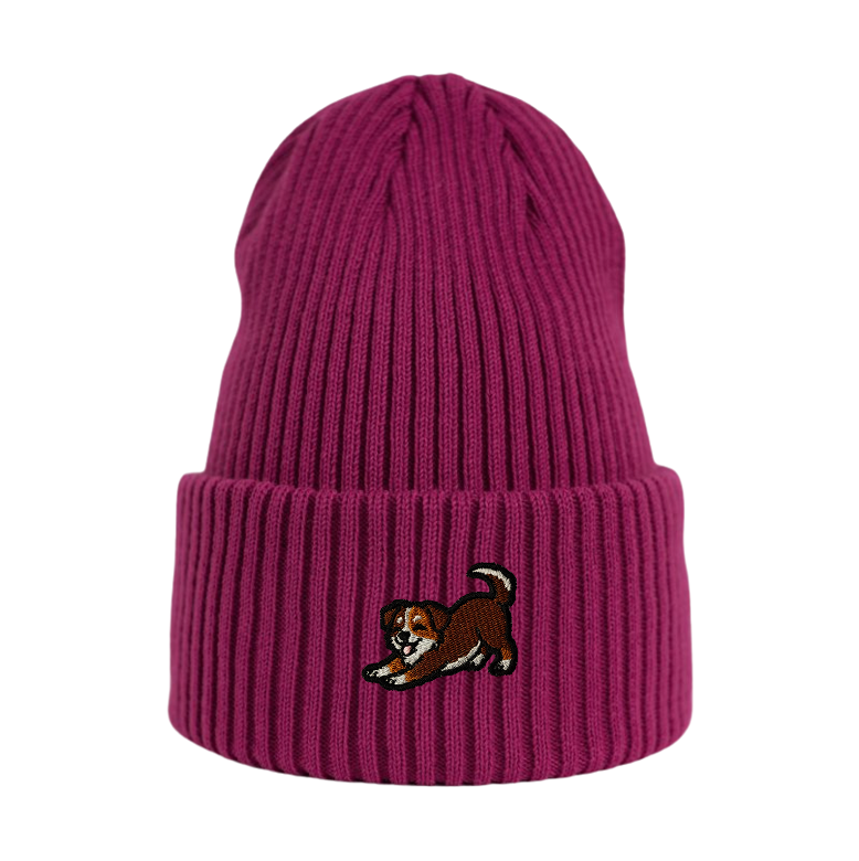 Haftowana czapka beanie - PIES KUNDELEK PRZECIĄGANKO