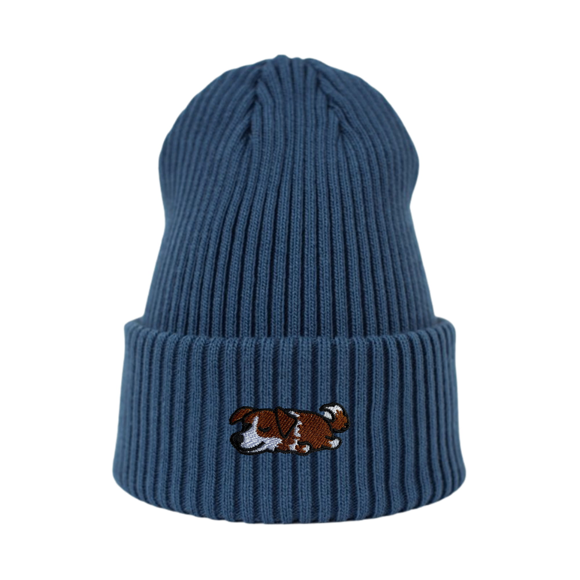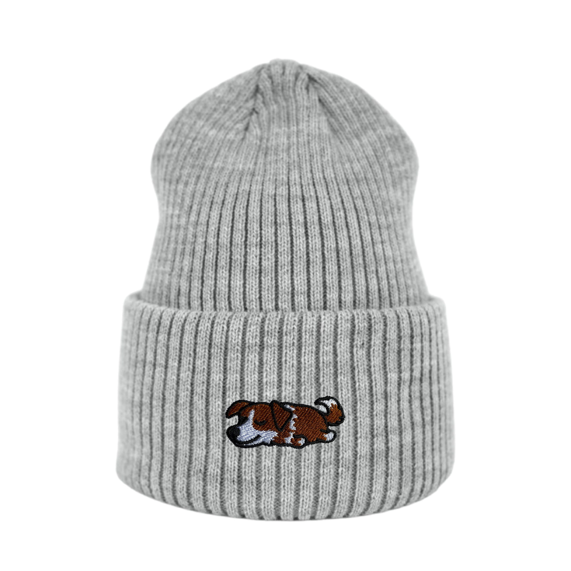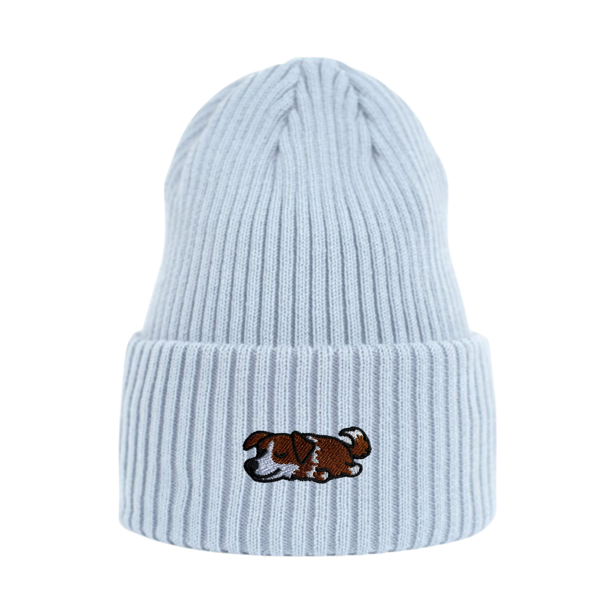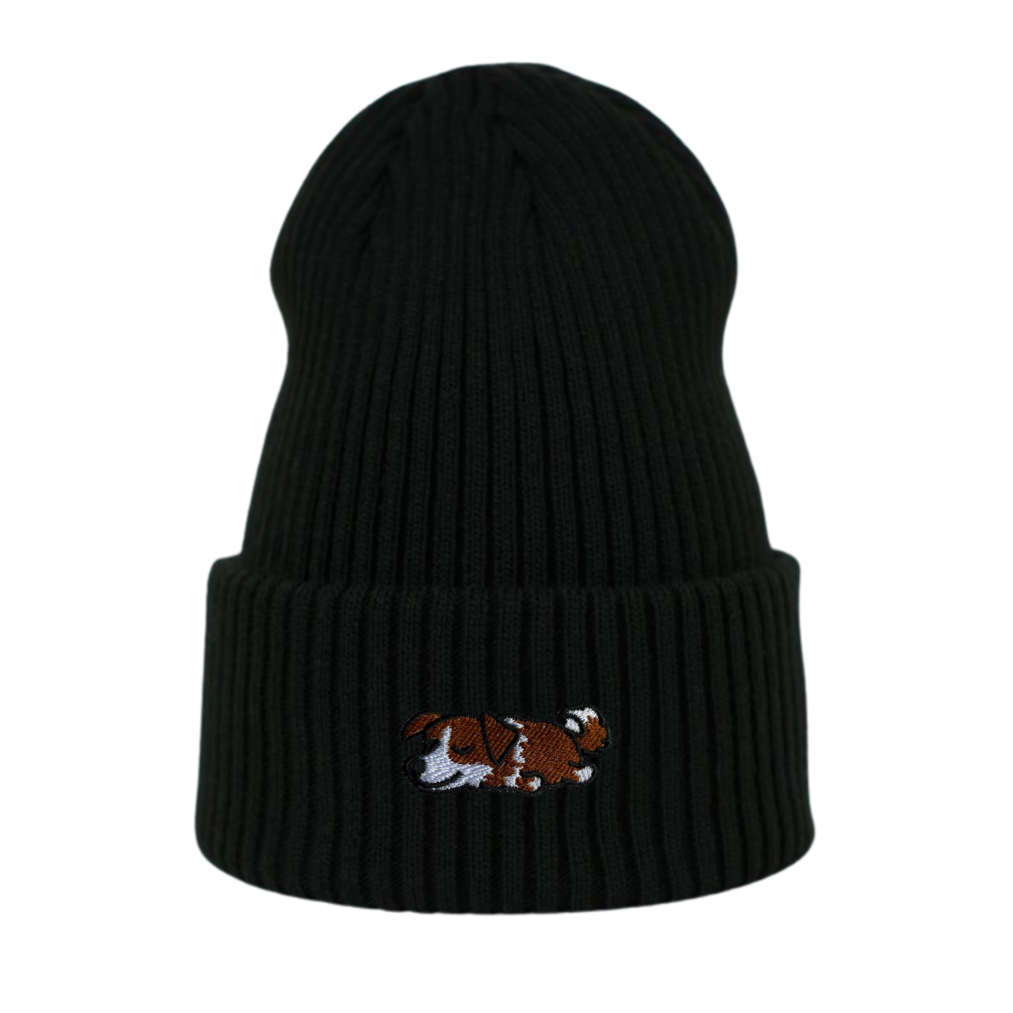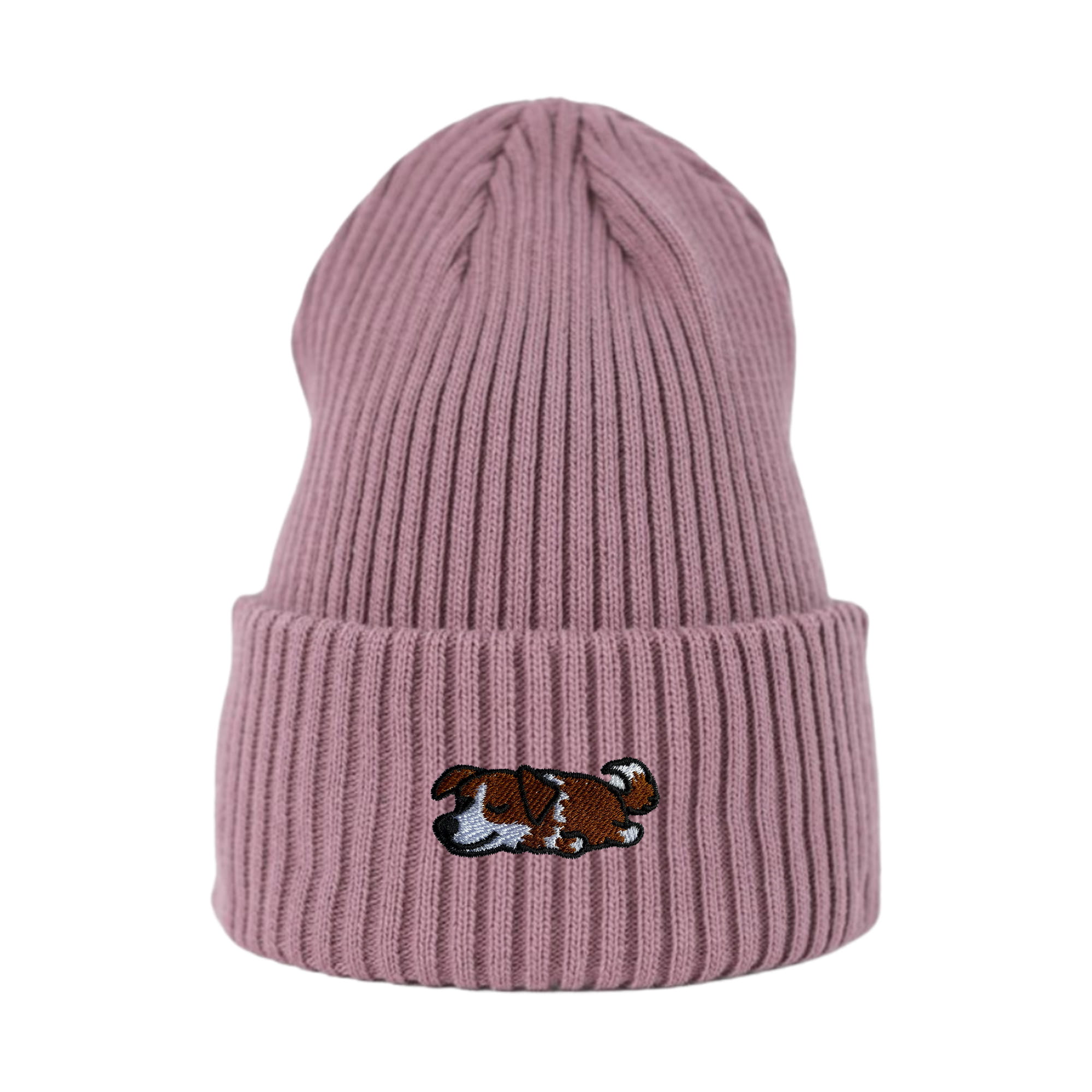 Haftowana czapka beanie - ŚPIĄCY BRĄZOWY BORDER COLLIE