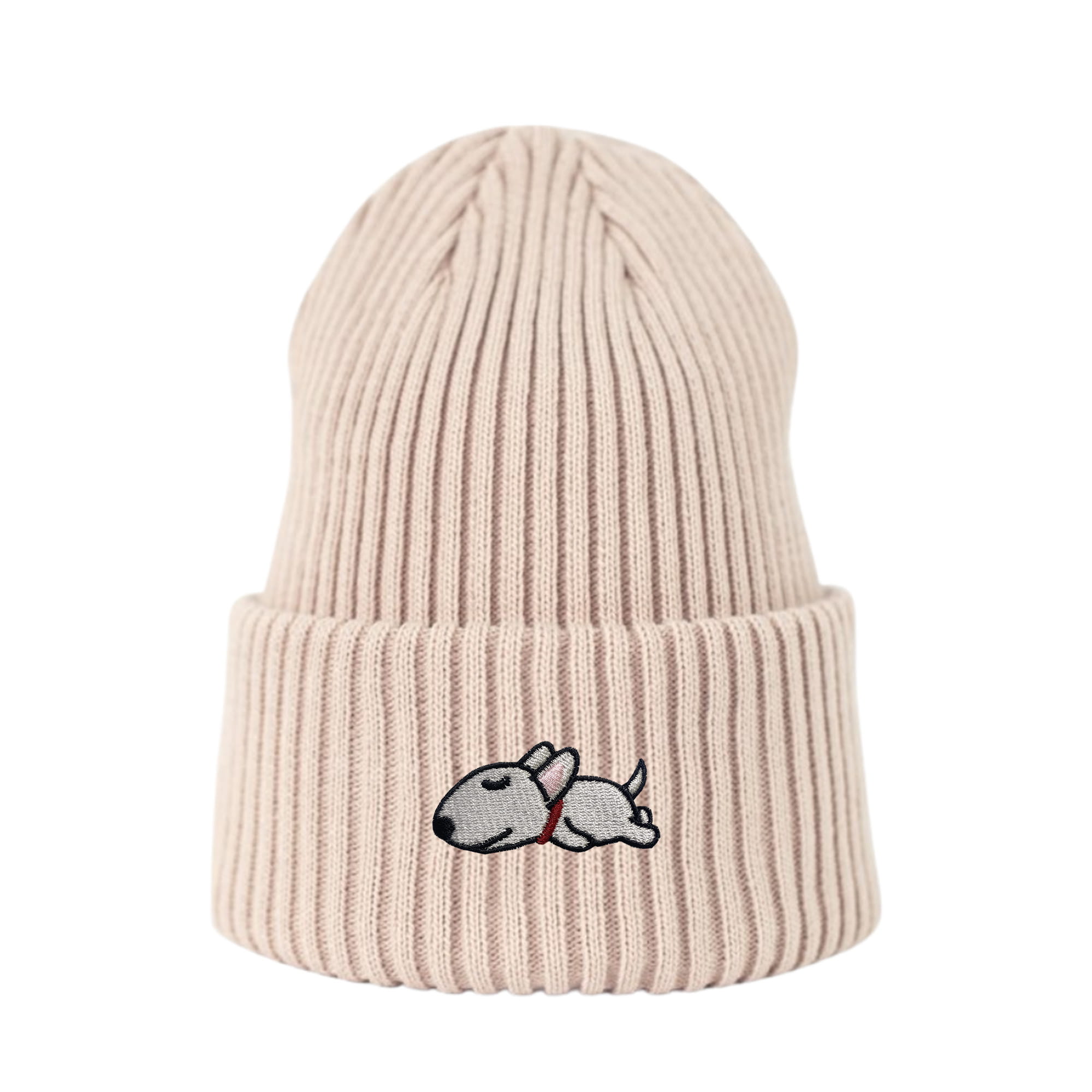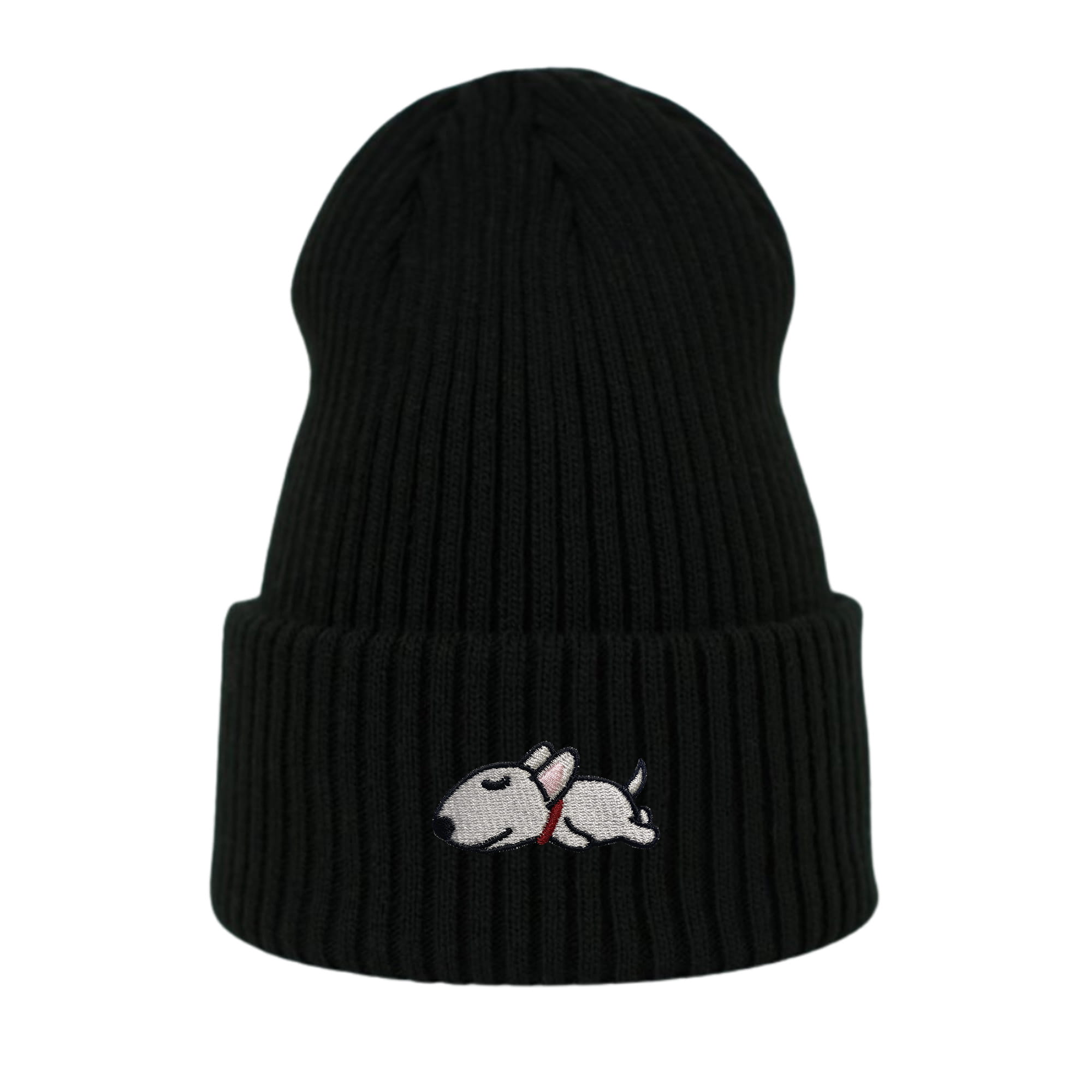 Haftowana czapka beanie - ŚPIĄCY BULTERIER