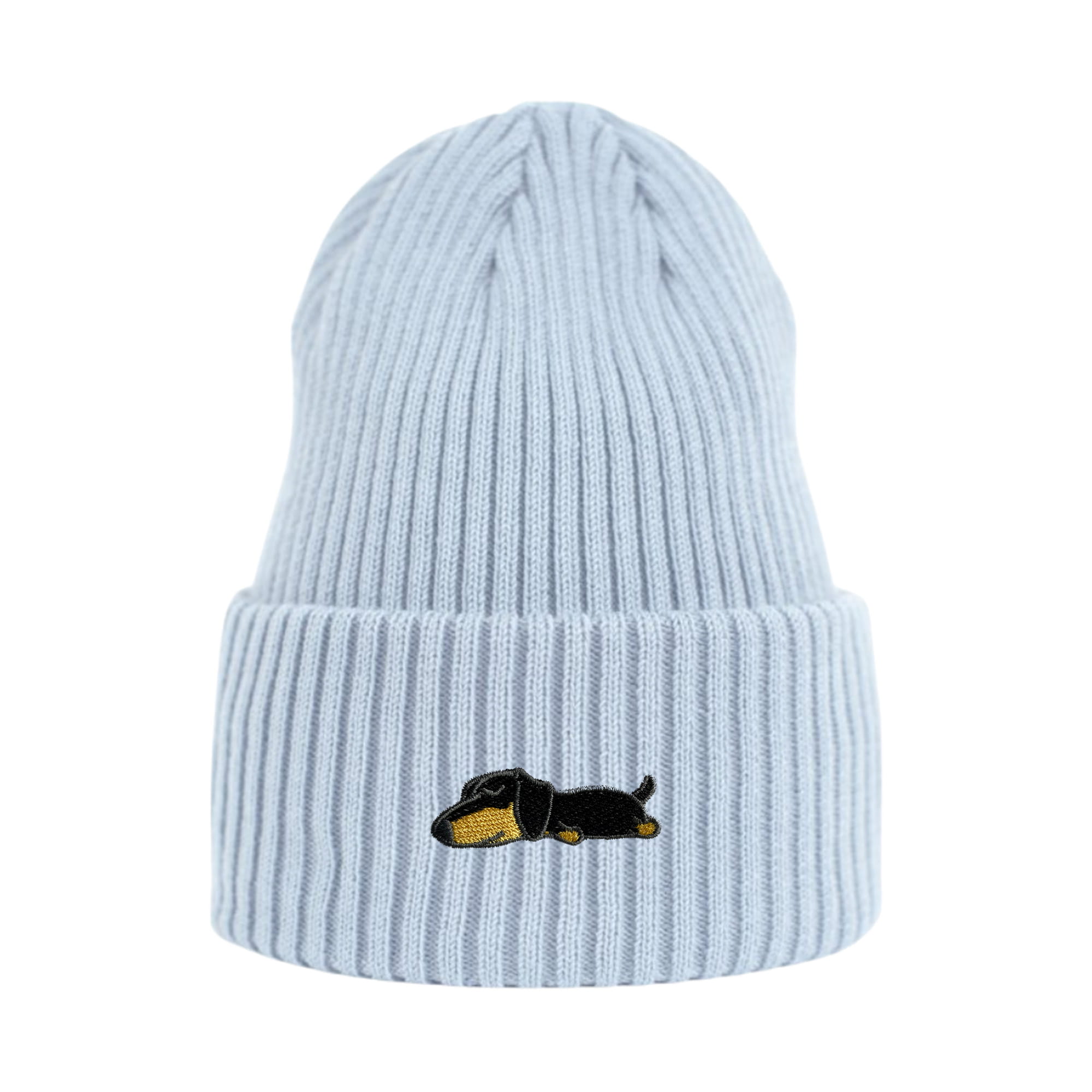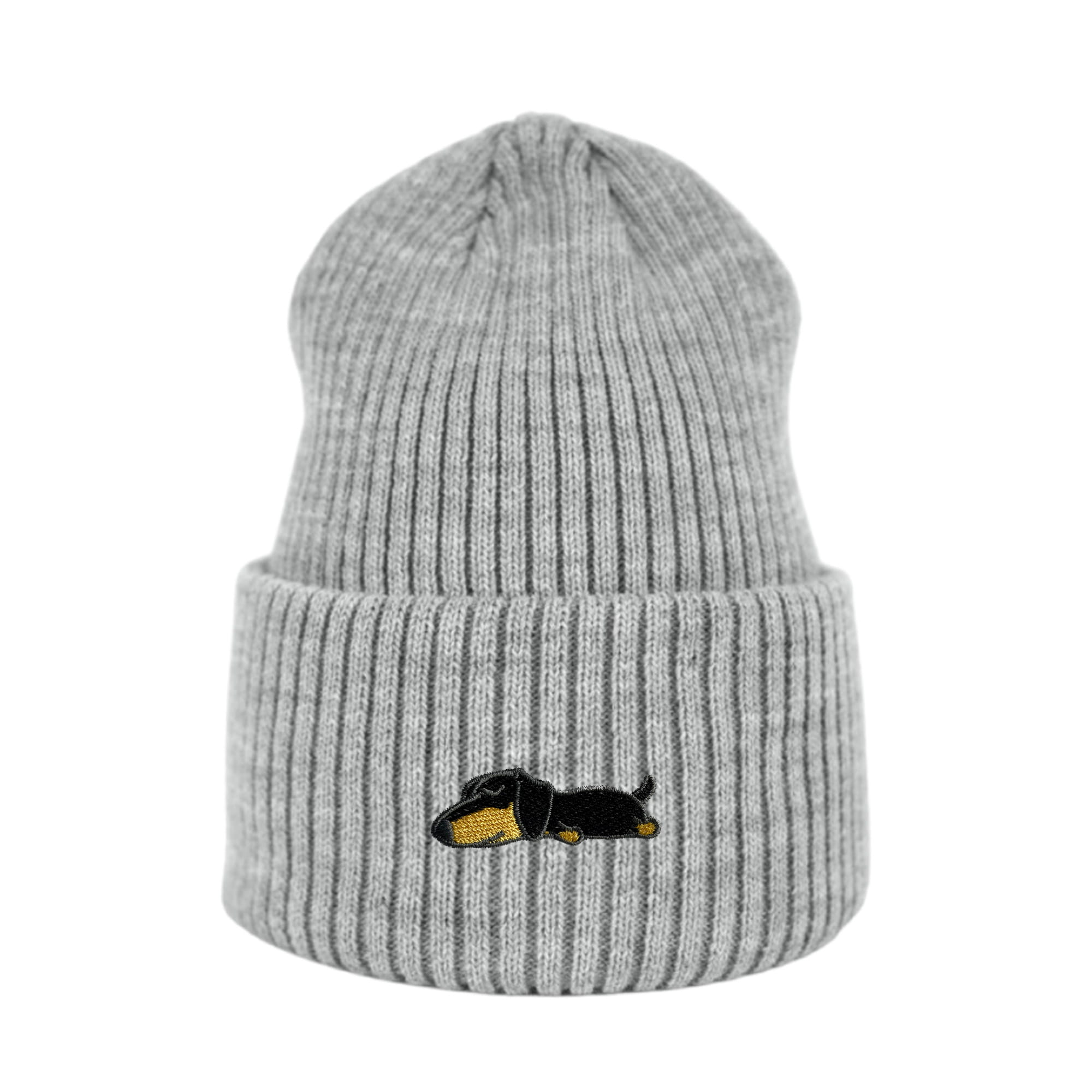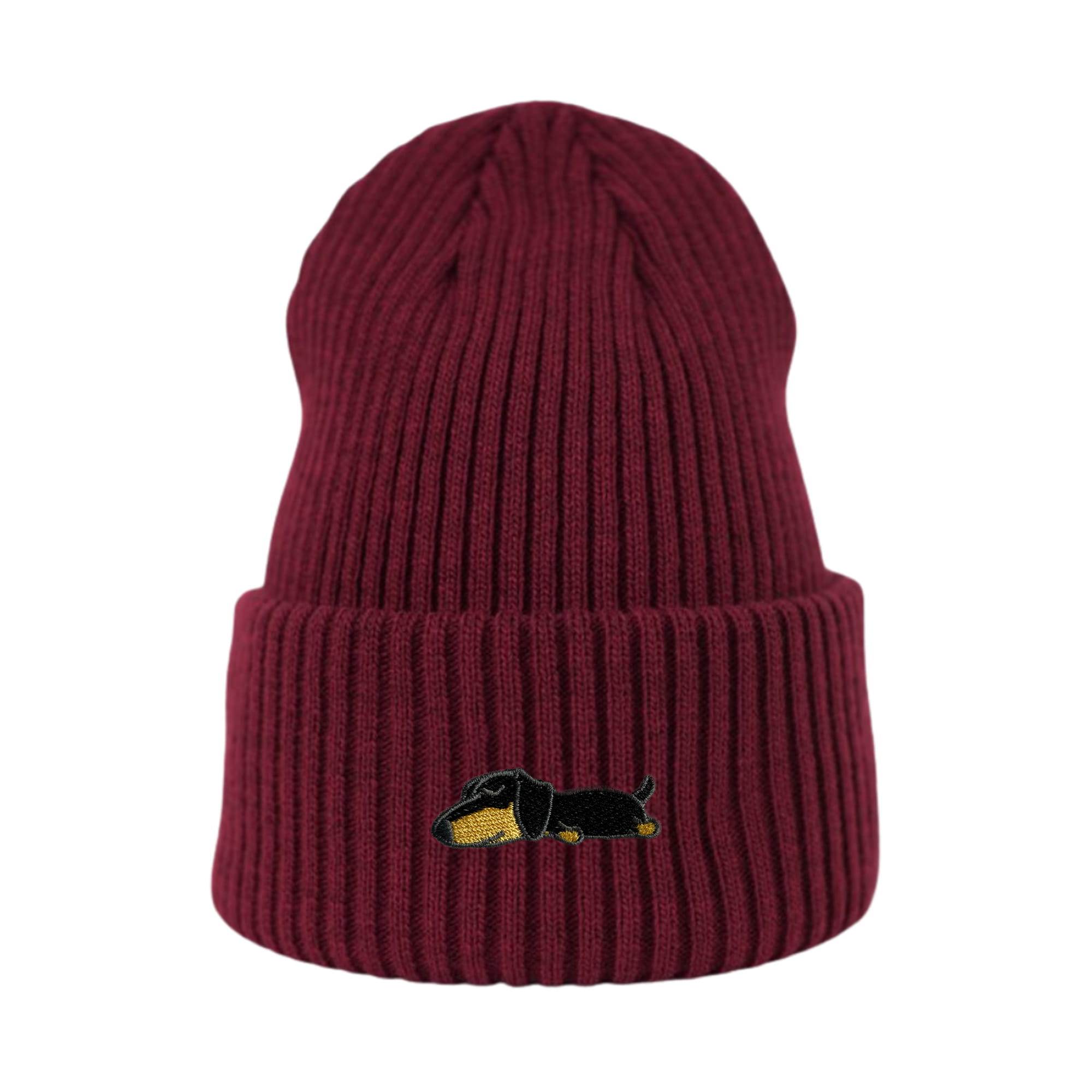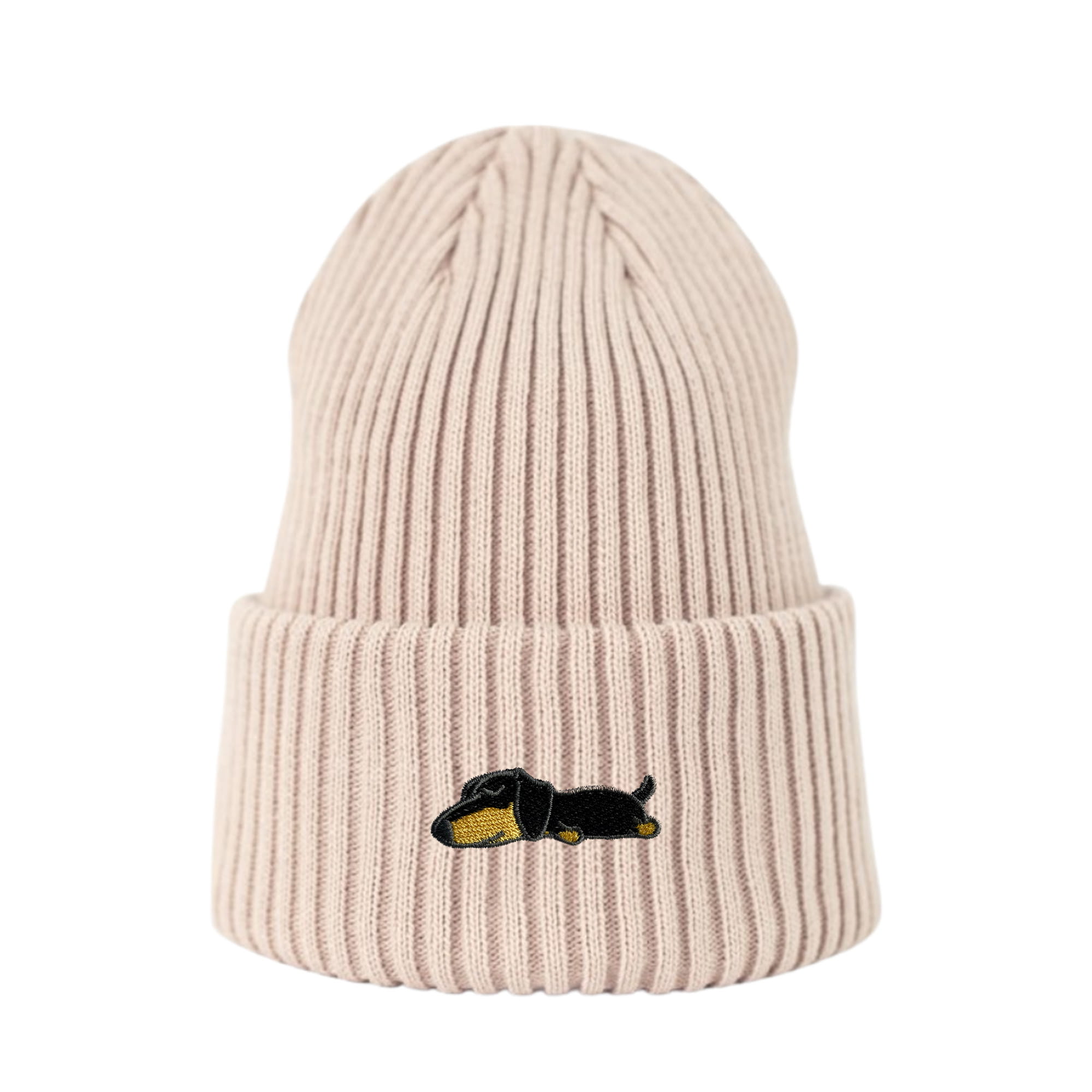 Haftowana czapka beanie - ŚPIĄCY CZARNY JAMNIK
