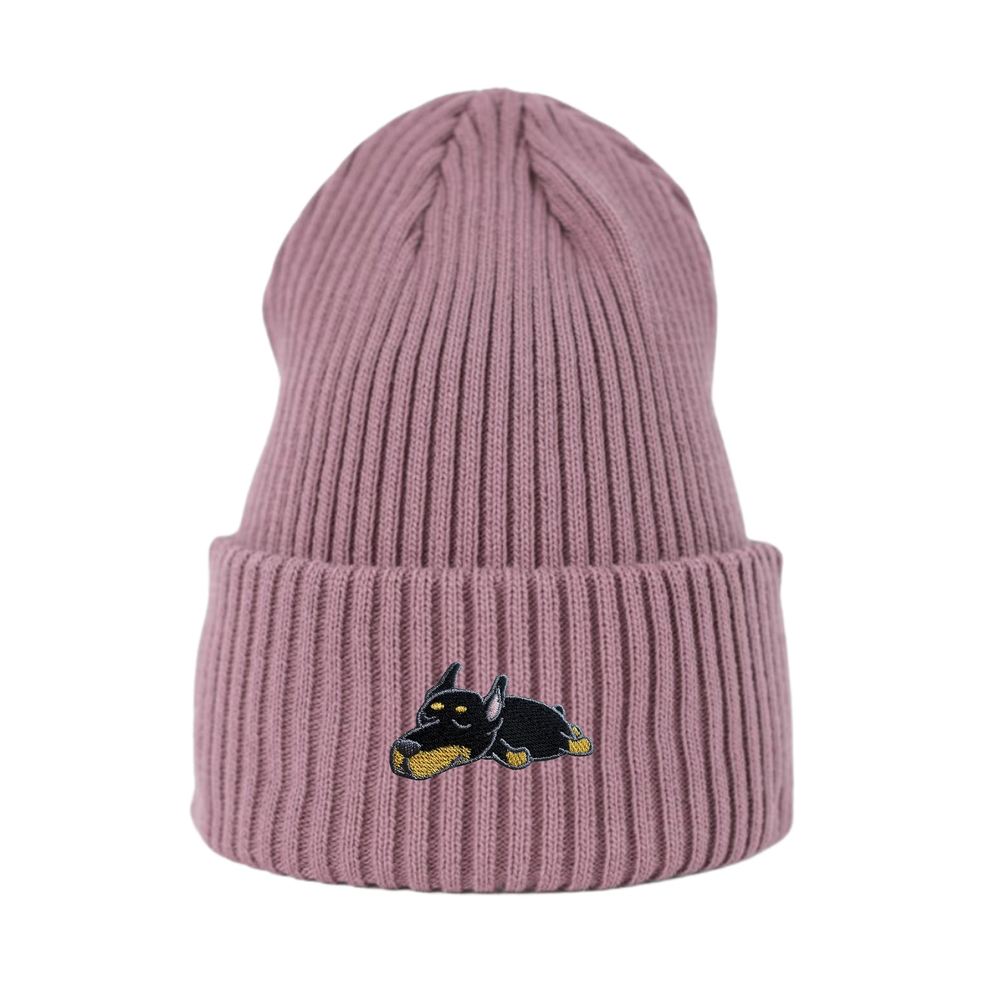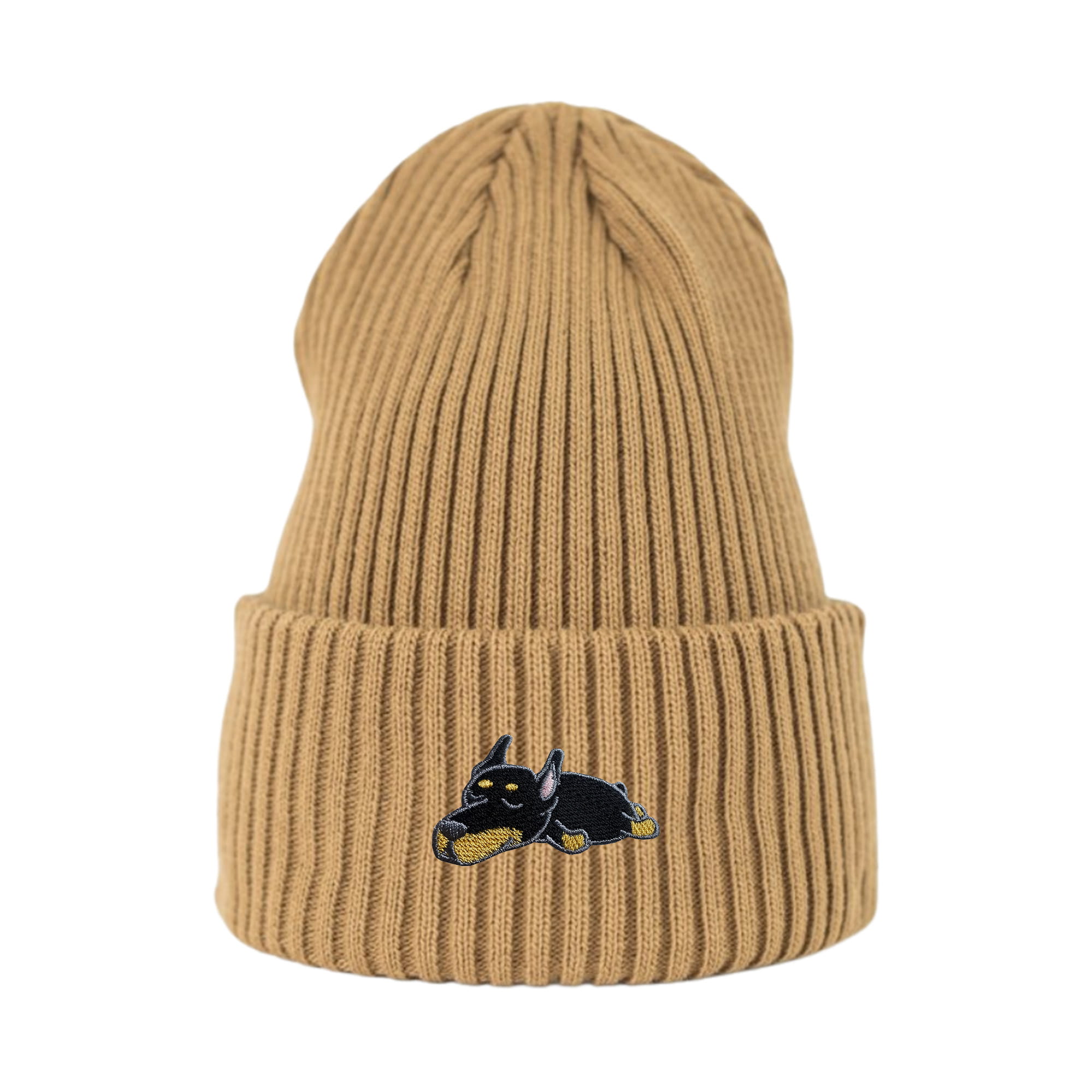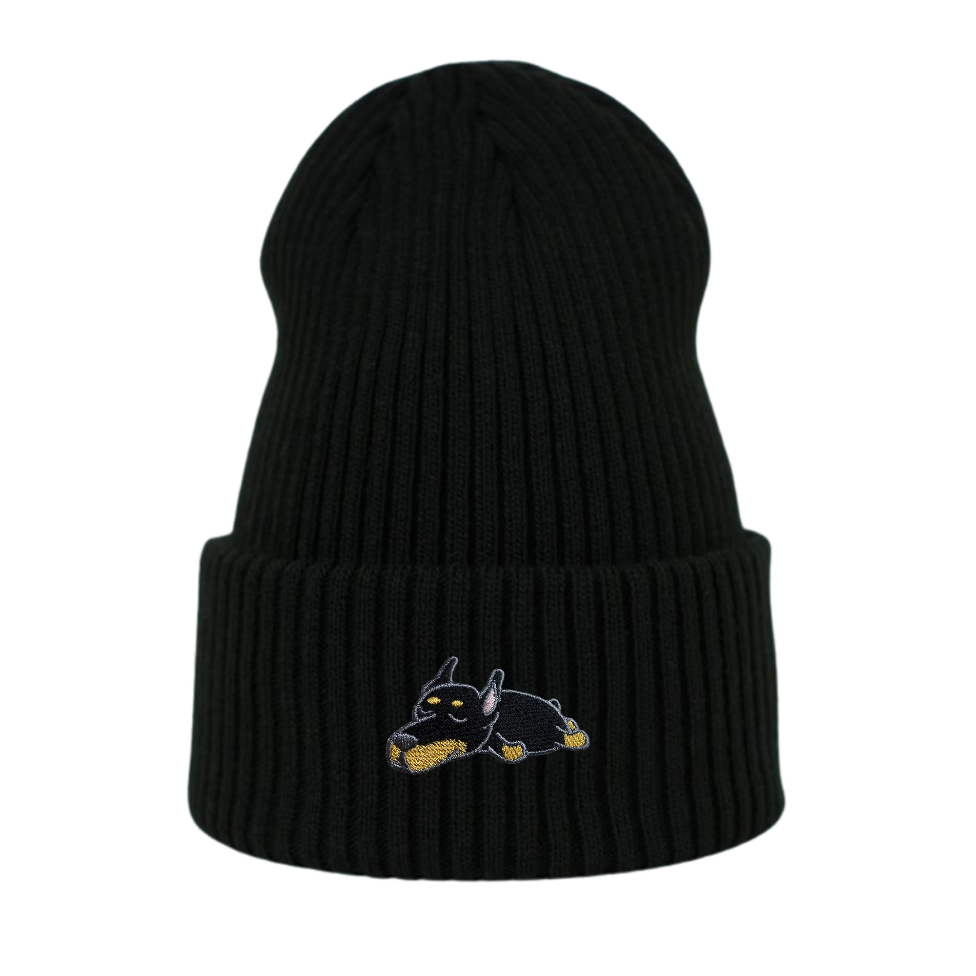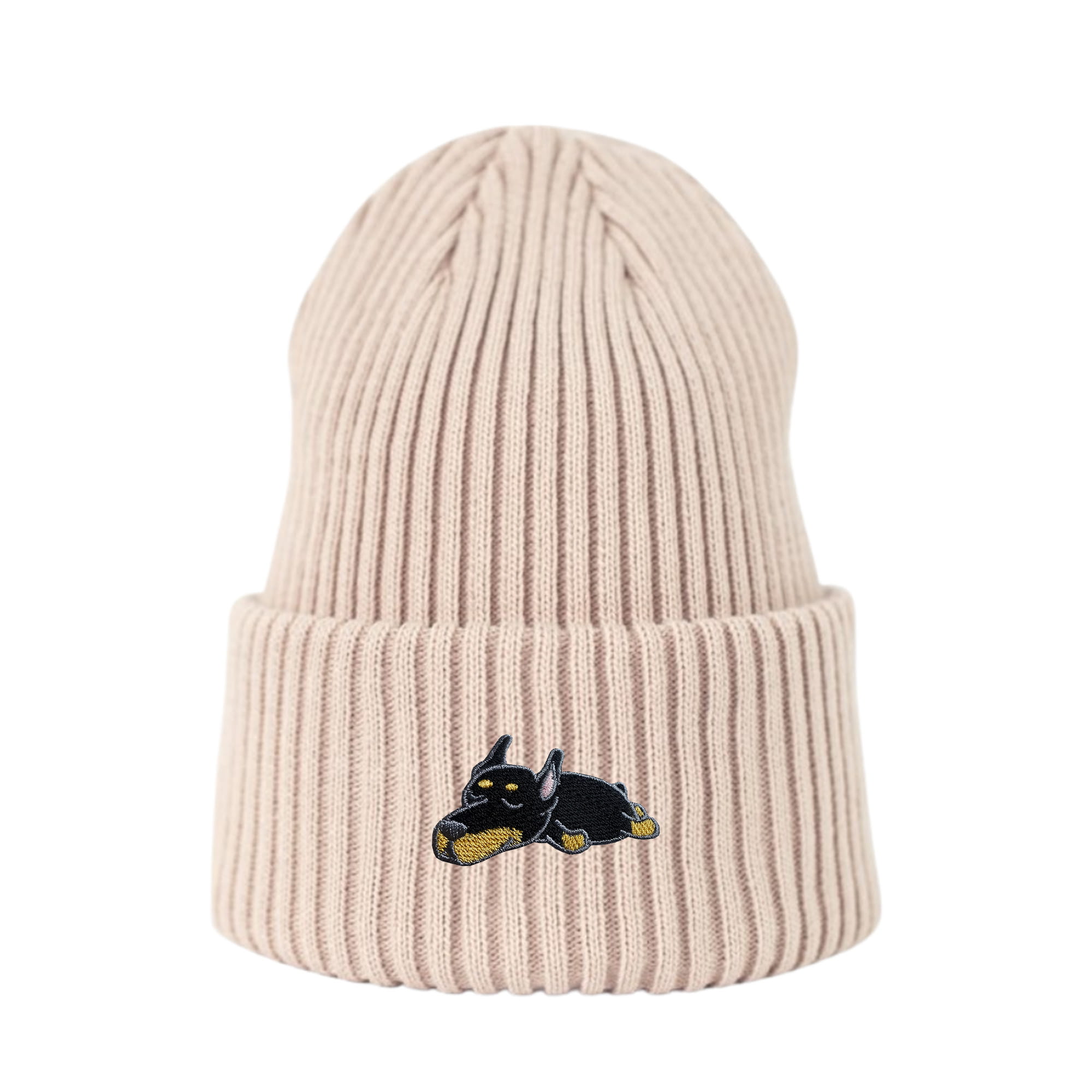 Haftowana czapka beanie - ŚPIĄCY DOBERMAN