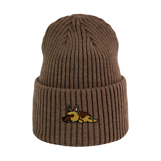 Haftowana czapka beanie - ŚPIĄCY OWCZAREK NIEMIECKI (WILCZUR)