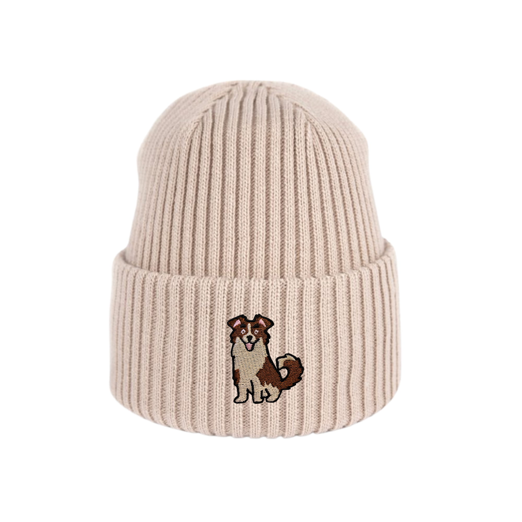 Haftowana dziecięca czapka beanie - BORDER COLLIE BRĄZOWY