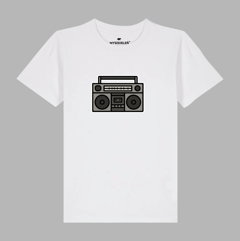 Koszulka z nadrukiem MAGNETOFONU z przodu.