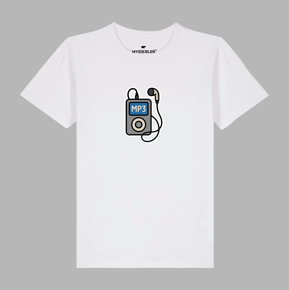 Koszulka z nadrukiem ODTWARZACZA MP3 z przodu.