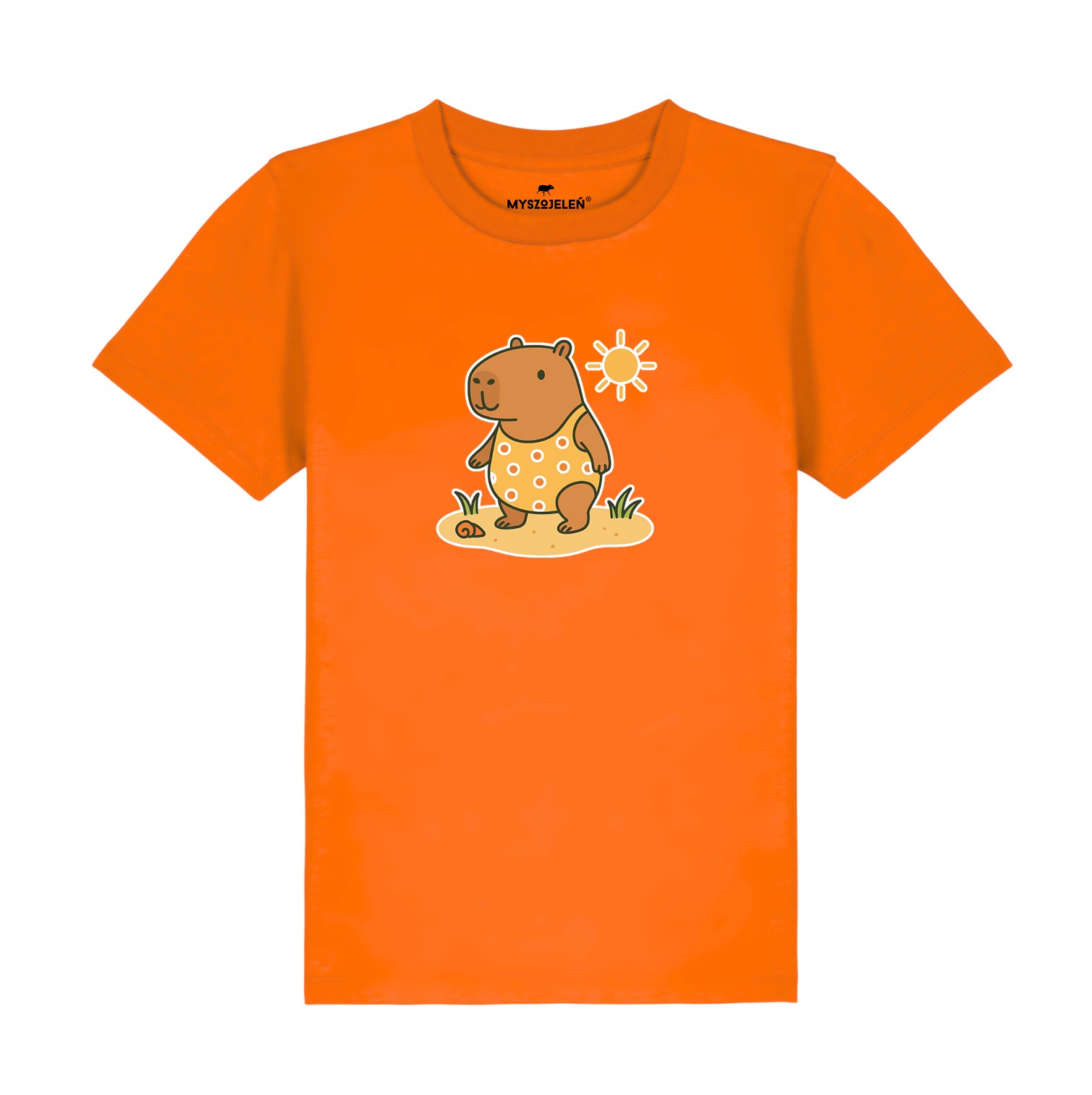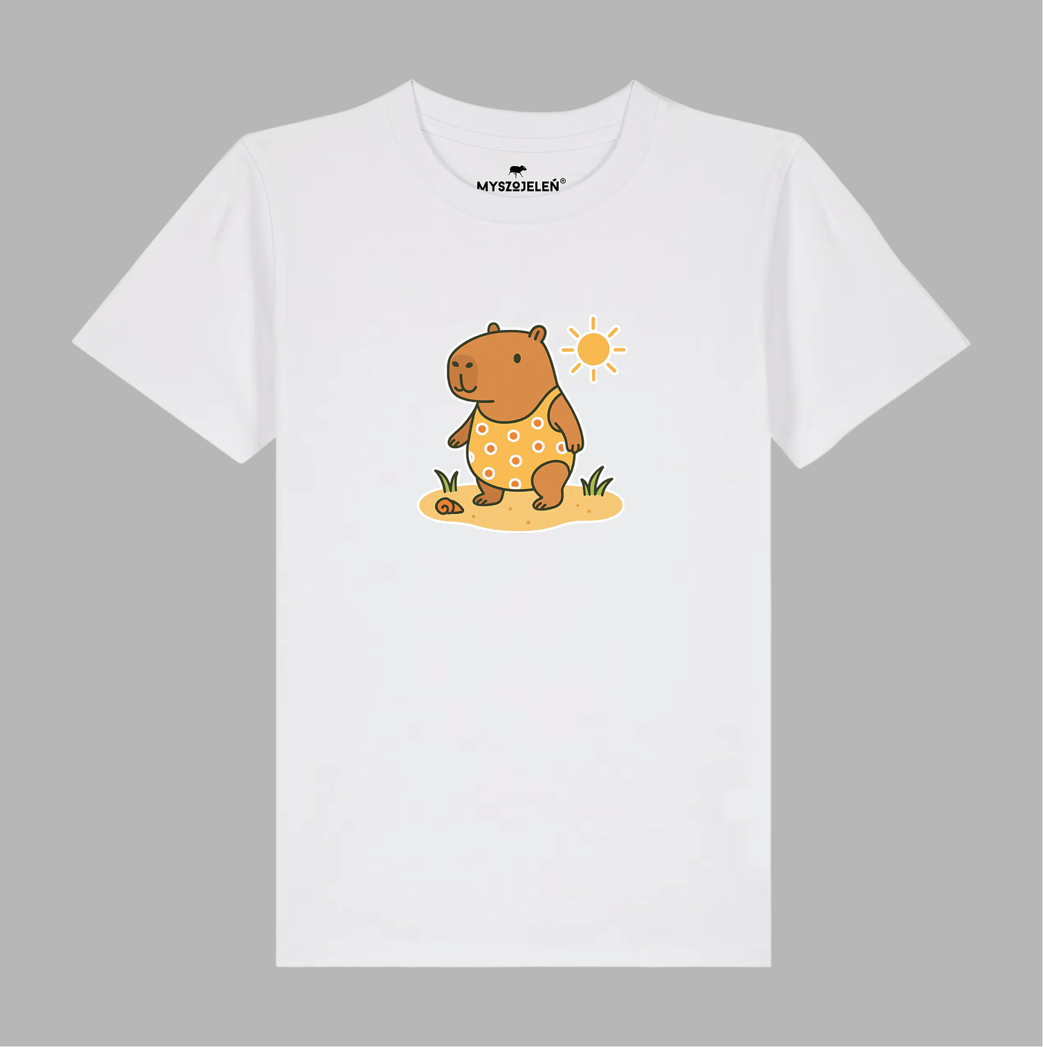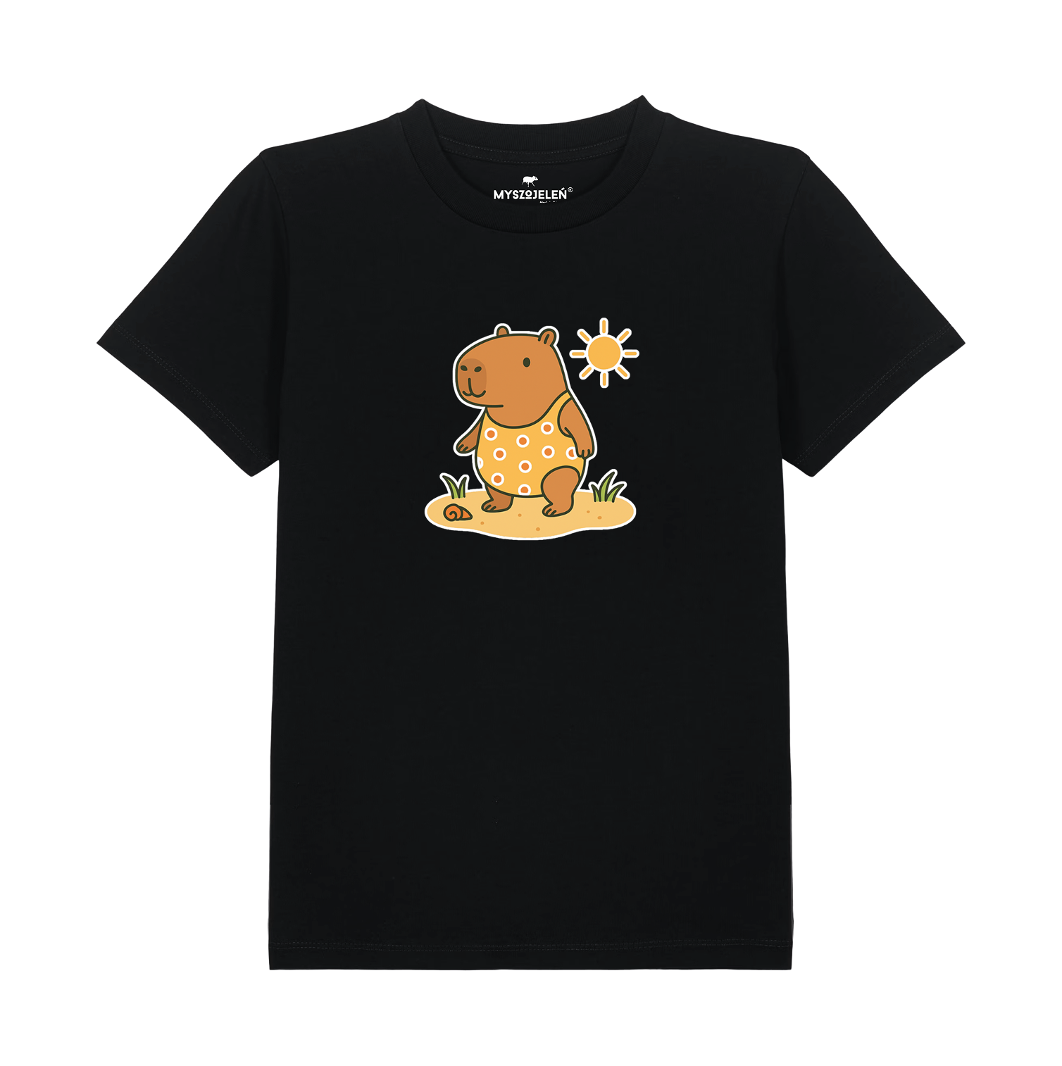 Koszulka z nadrukiem kapibary w wakacyjnej odsłonie z przodu.